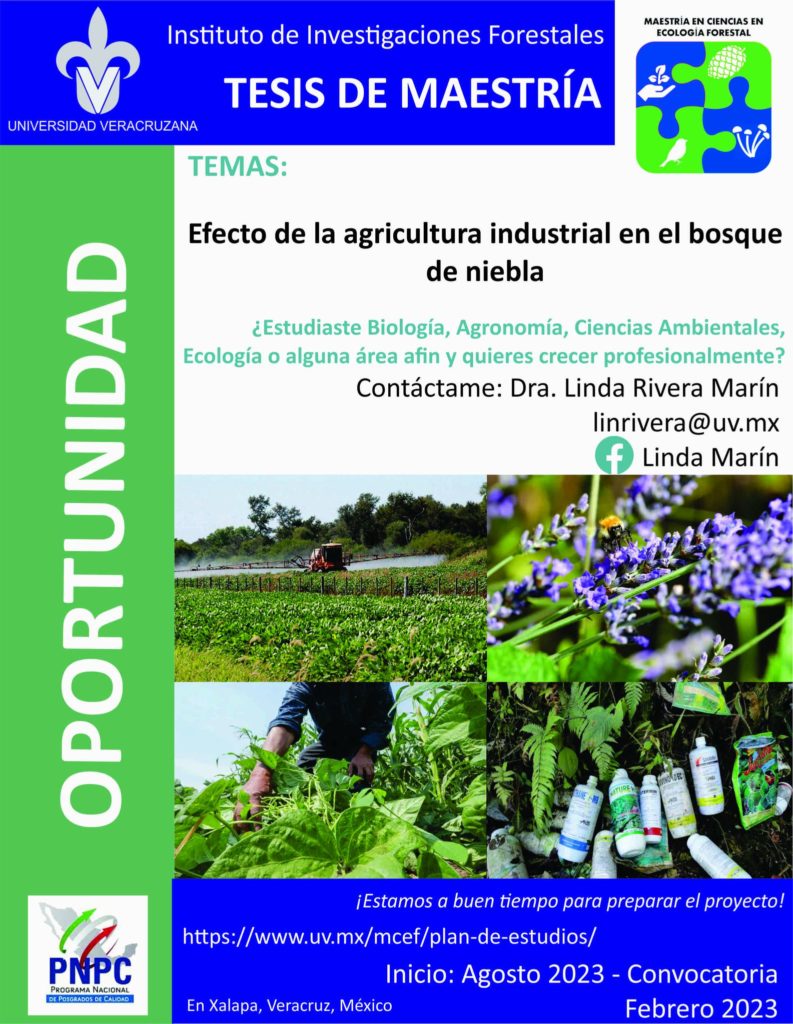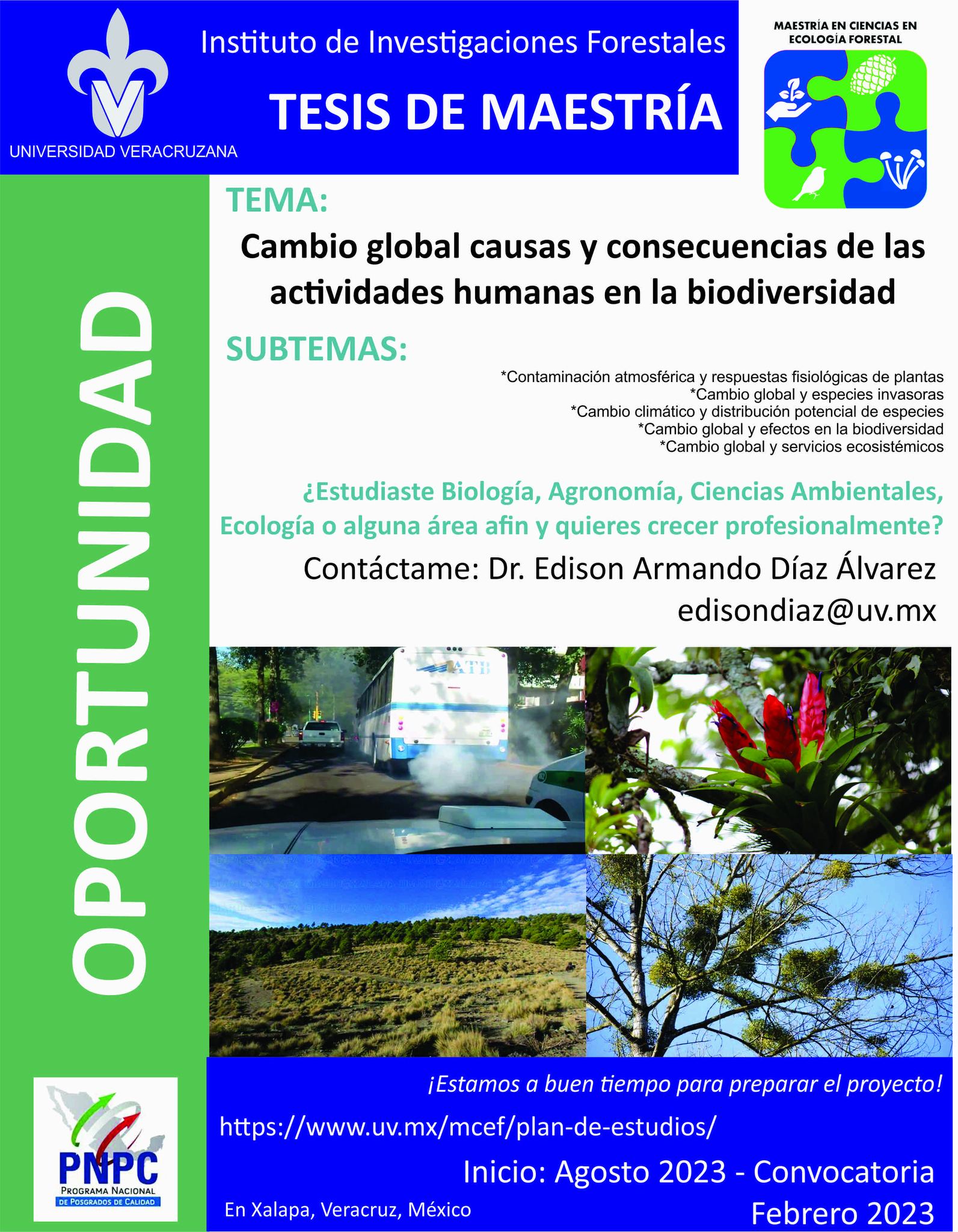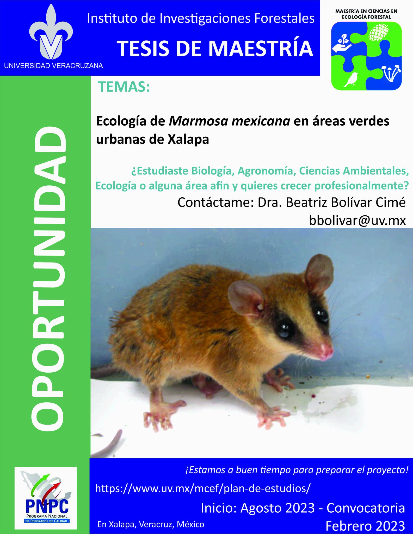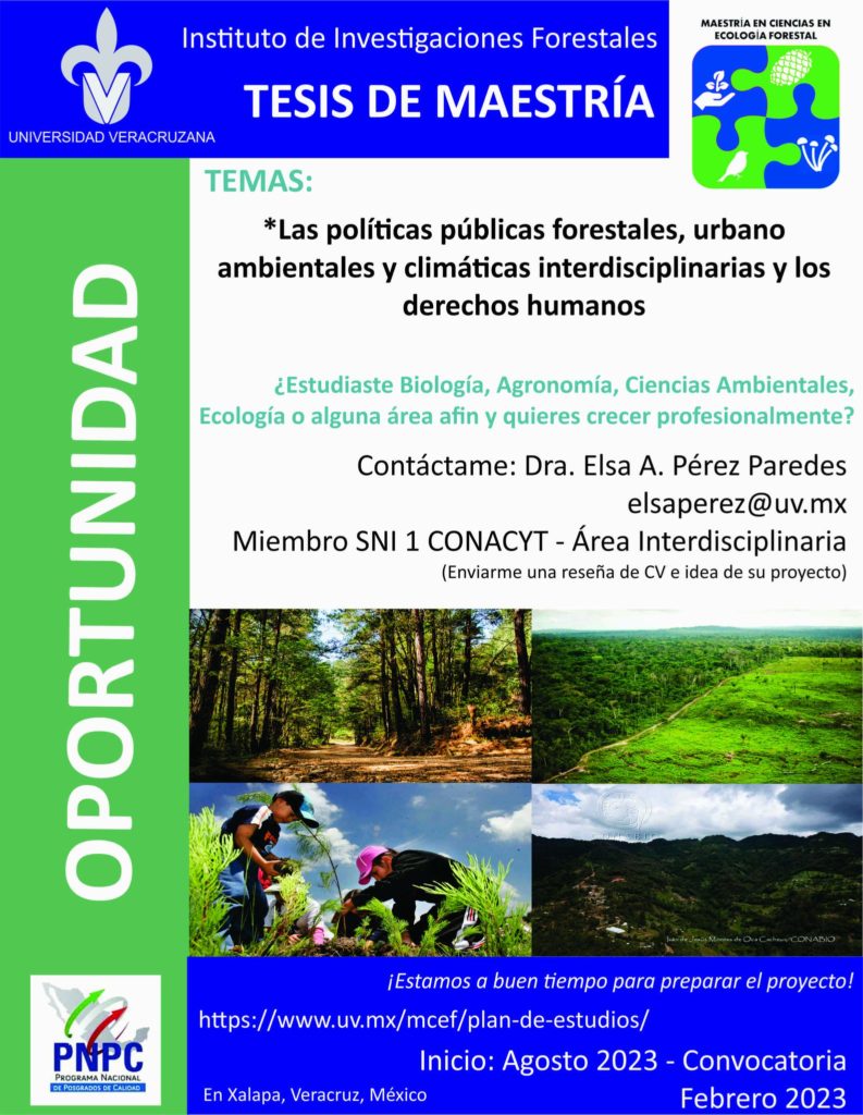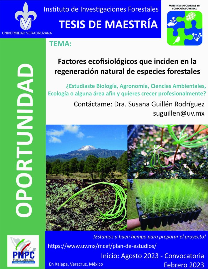 La Maestría En Ciencias en Ecología Forestal tiene para ti las siguientes oportunidades para que puedas realizar tu tesis de maestría en el Instituto de Investigaciones Forestales (INIFOR) de la Universidad Veracruzana.