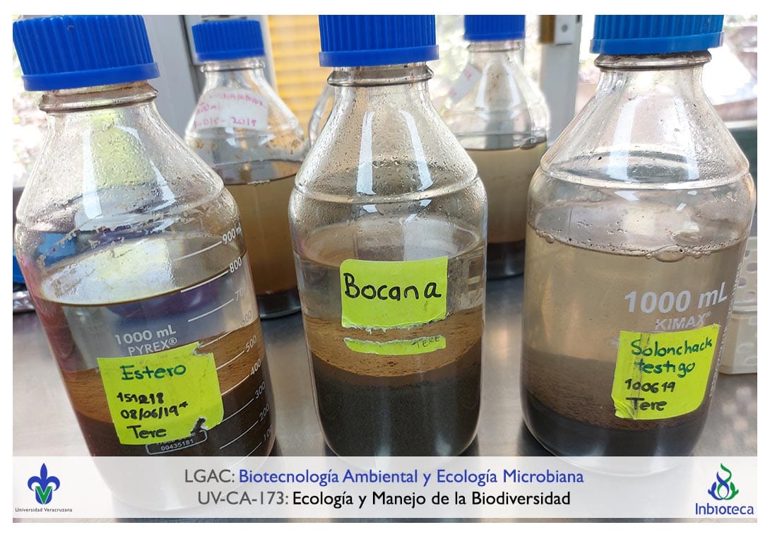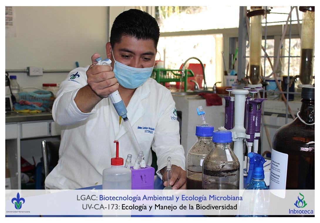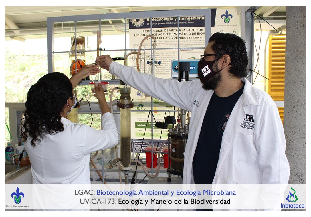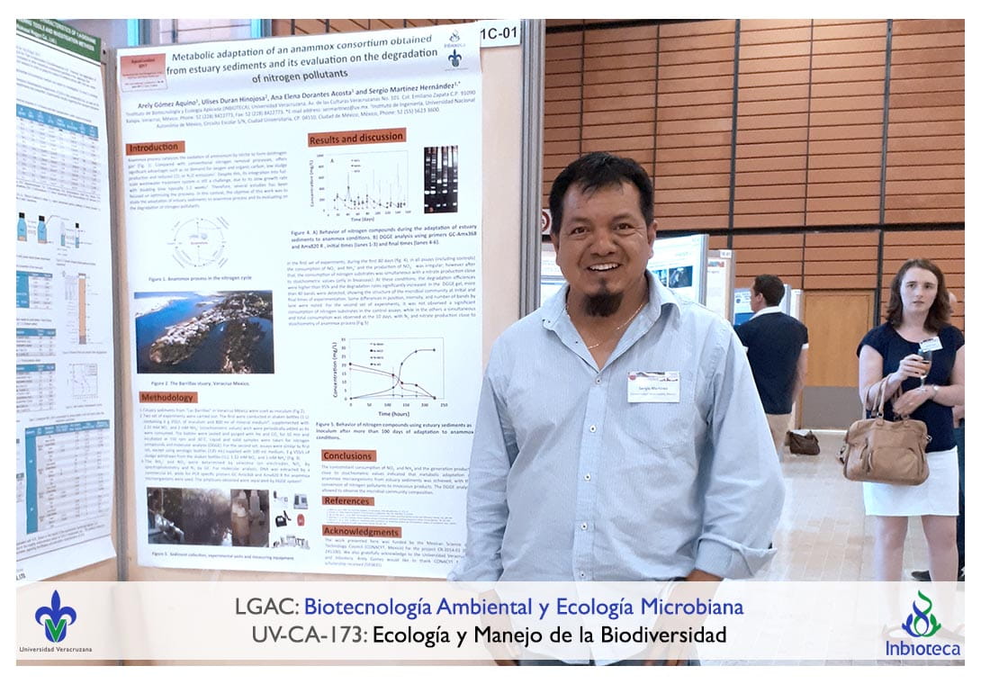 Sublínea 2: Se basa en el estudio de grupos microbianos involucrados en el ciclo biogeoquímico del nitrógeno con el propósito de aplicarlos en procesos biotecnológicos para el tratamiento de aguas residuales. Actualmente, se profundiza en el estudio del proceso anammox y en los recién descubiertos microorganismos comammox. Las investigaciones han permitido conocer aspectos básicos de la fisiología, cinética y ecología de estos microorganismos, cuyos hallazgos se han publicado en revistas de alto impacto como water environmental research y chemosphere. El desarrollo de esta línea ha permitido colaborar con el departamento de limpia pública del municipio de Xalapa, Veracruz, mediante la búsqueda de propuestas para el tratamiento de los lixiviados generados de una planta de compostaje de la fracción orgánica de la basura municipal. También se ha podido colaborar con el departamento de cultura del agua del municipio de Emiliano Zapata, Veracruz en estrategias para optimizar el funcionamiento de las plantas de tratamiento de las aguas residuales domésticas.