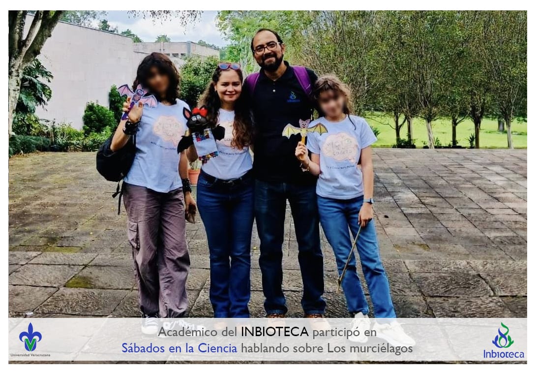 Octubre de 2025.- El Dr. Alejandro Antonio Castro Luna (SNII 2, Perfil Deseable PRODEP) Académico-Investigador del INBIOTECA, en colaboración con la Dra. Rosa María González Marín, líder del Proyecto El Loro de mi Cabeza: Arte y Ciencia para Niñas y Niños, con el apoyo del Biol. Miguel Angel Gutiérrez Martínez, M.C. María Fernanda Armas Ortiz y los estudiantes Rosa Isela y Alejandra Sofía Castro González, Thomas A. Cruz Armas y Odalys Rodríguez Sánchez, participaron en el ciclo Sábados en la Ciencia, iniciativa de divulgación de la Ciencia de la Dirección General de Investigaciones (DGI), que se realizó el 4 de octubre de 2025 en las instalaciones del Museo de Antropología de Xalapa (MAX).