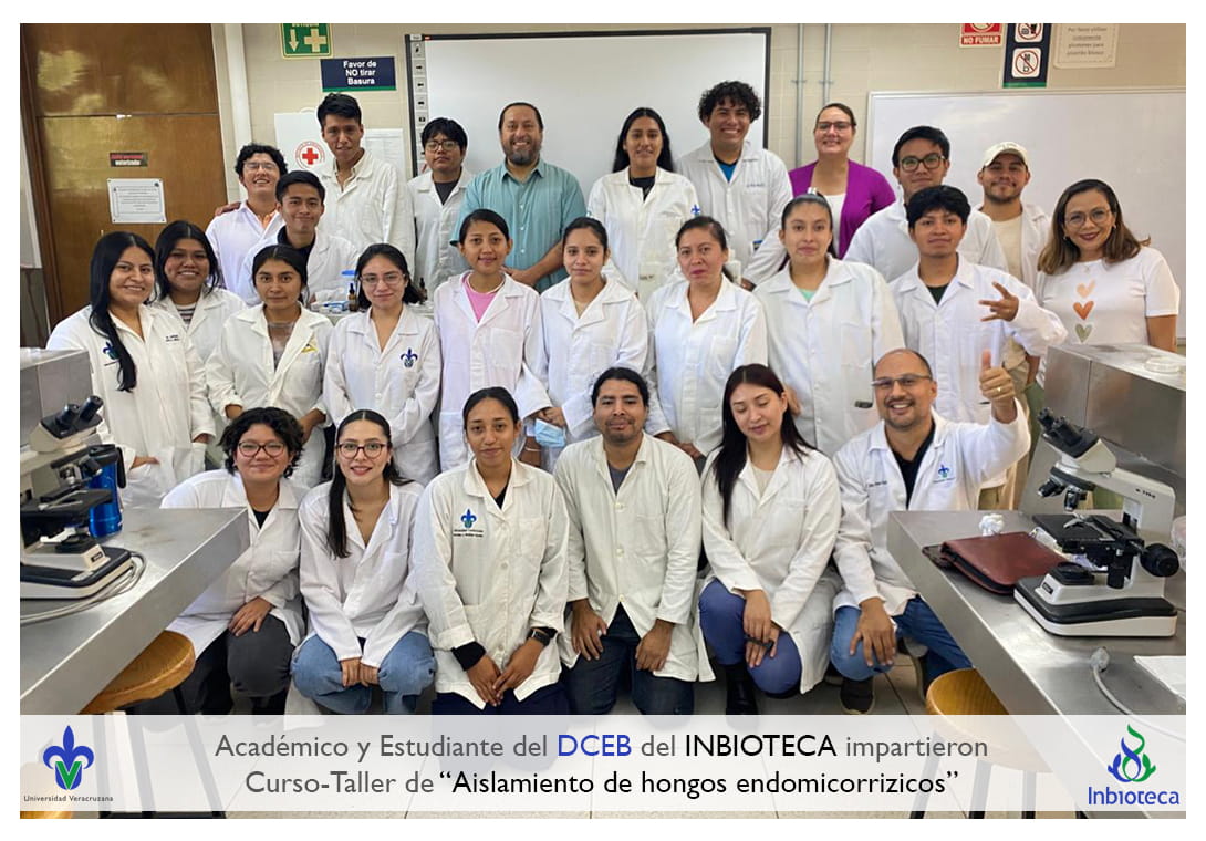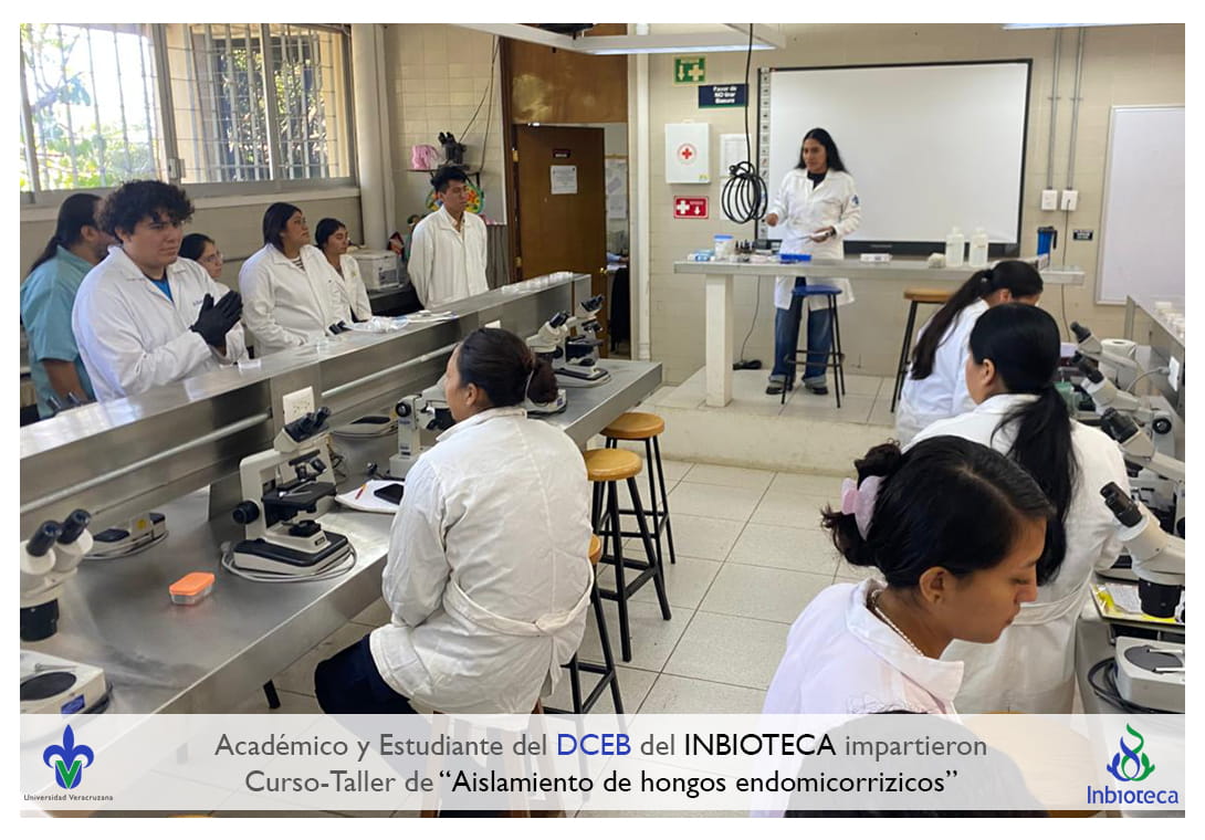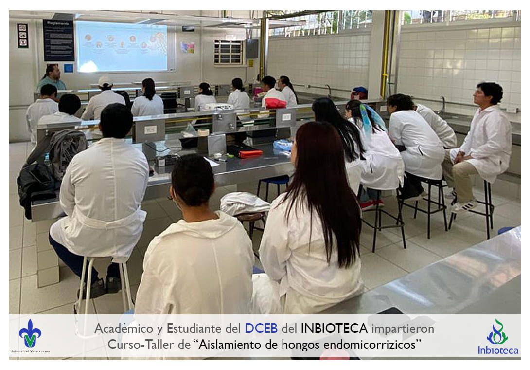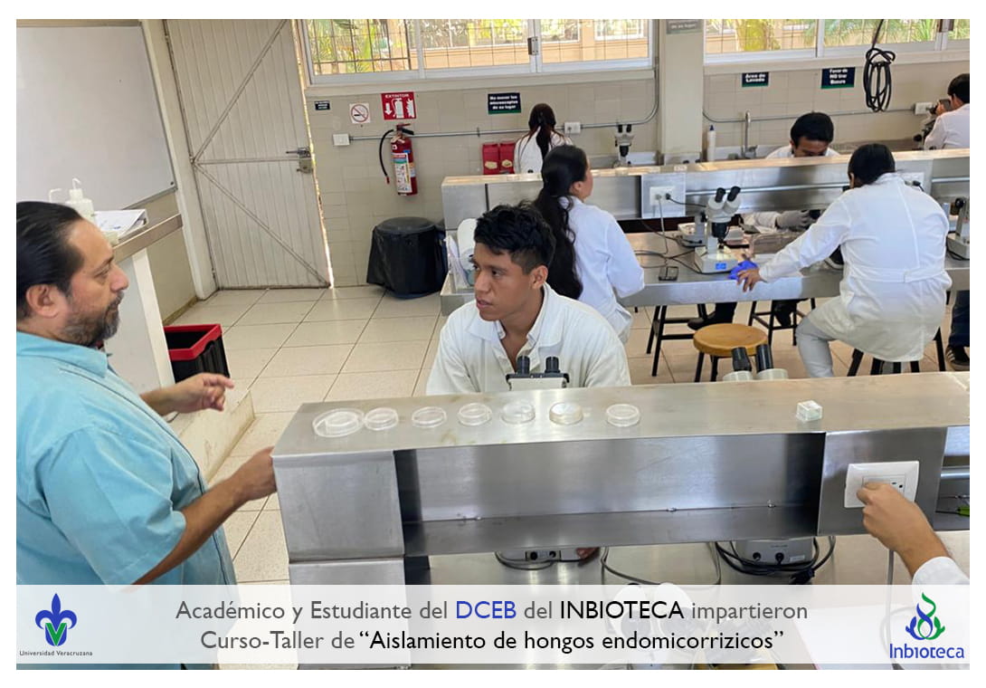 En el Taller práctico los estudiantes recibieron capacitación teórica y practica en conceptos y métodos para el estudio de hongos micorrizicos con énfasis en micorrizicos arbusculares. Se agradece a la M.H.T. Norma Berzabel Zilli Ponce (Secretaria de la facultad), a la Dra. Alma Berenice Morales Guzman (Coordinadora del P.E. de Licenciado en Biología) y al Dr. Régulo Carlos Llarena Hernández (Académico de la facultad) la invitación y el apoyo para realizar exitosamente este curso taller. Estas actividades se enmarcan dentro de la LGAC: Biotecnología y Ecología de Organismos Simbióticos del Cuerpo Académico: Ecología y Manejo de la Biodiversidad (UV-CA–173) del INBIOTECA.