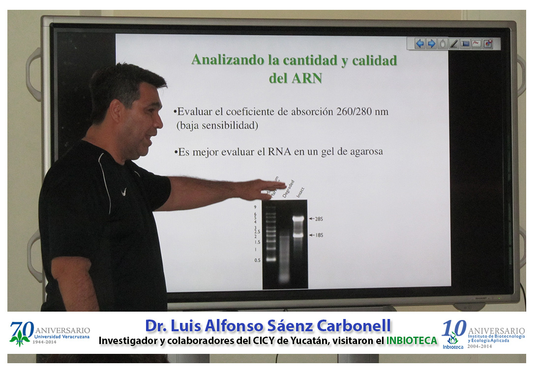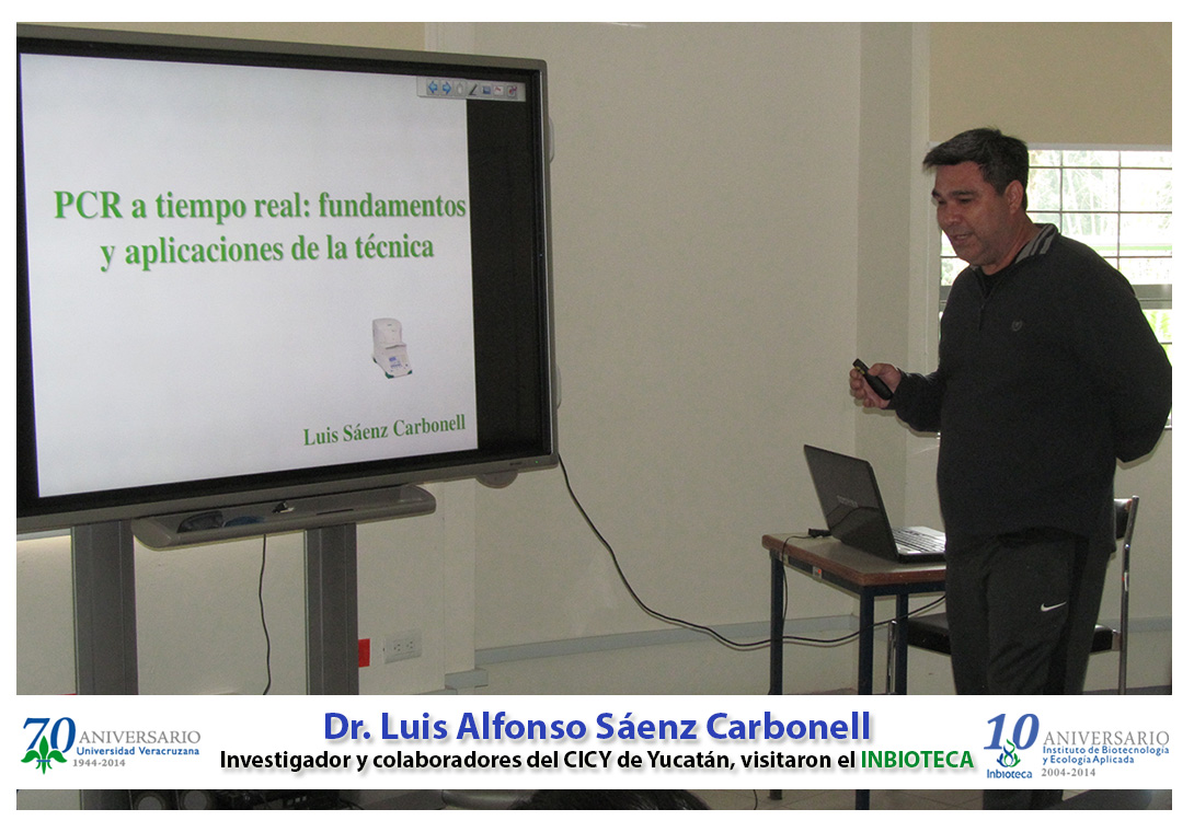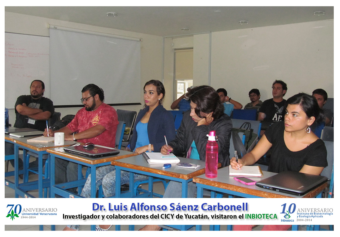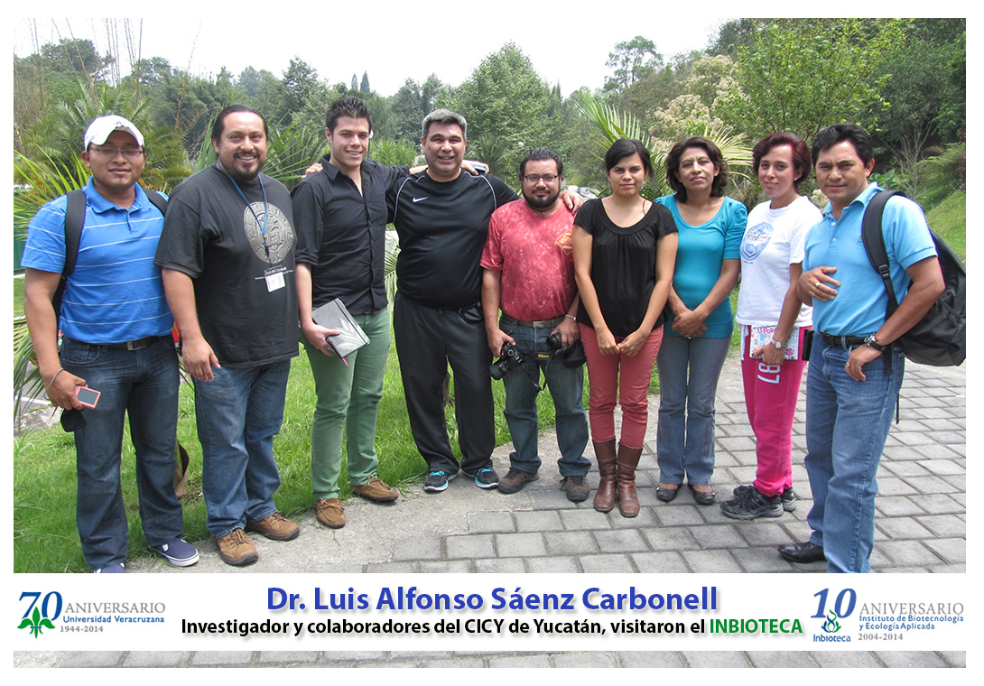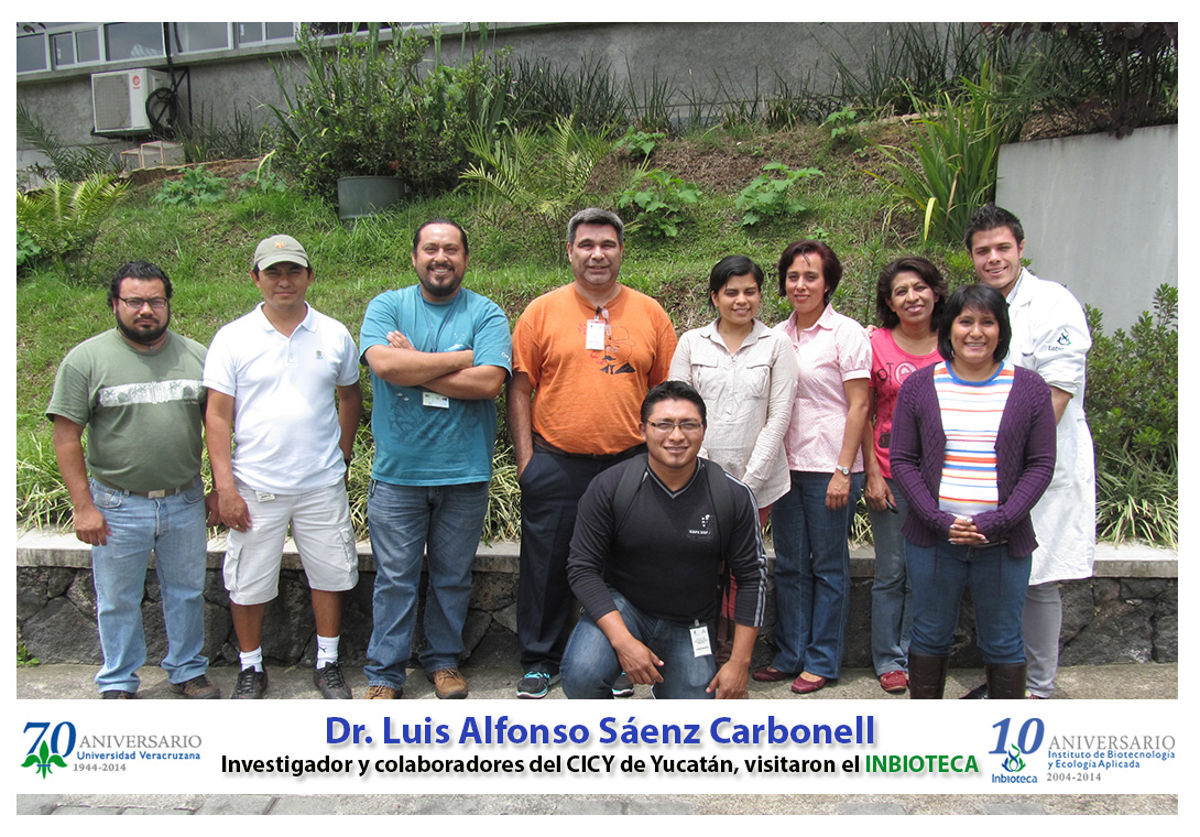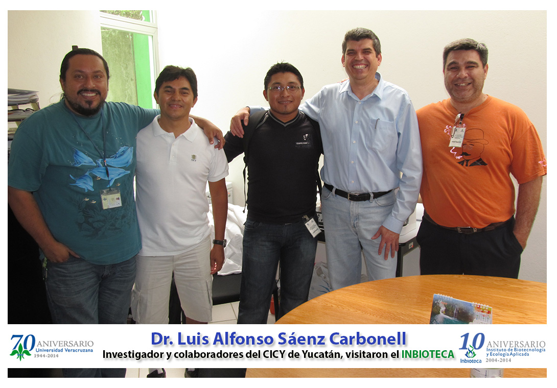 Mayo de 2014.- Del 6 al 10 de mayo de 2014, el Dr. Luis Alfonso Sáenz Carbonell y sus colaboradores M.C. Iván I. Córdova Lara y M.C. Carlos A. Puch Hau de la Unidad de Biotecnología del Centro de Investigación Científica de Yucatán (CICY), realizaron una estancia de colaboración académica en INBIOTECA como parte de las actividades programadas en colaboración con los académicos Dr. Antonio Andrade Torres y Dr. Angel I. Ortiz Ceballos, ambos miembros del CA-UVER-173 "Ecología y manejo de la biodiversidad",