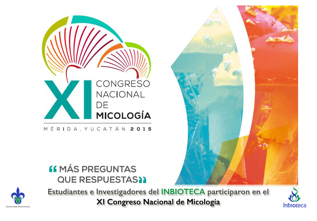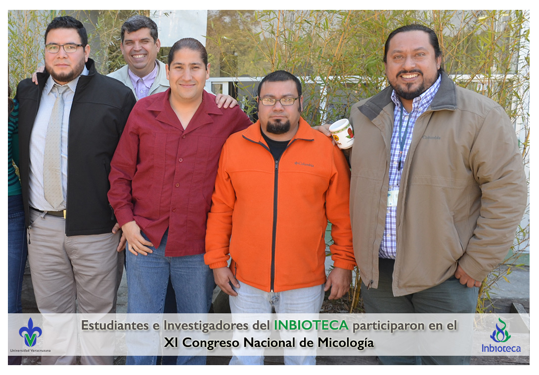 Octubre de 2015.- Un estudiante de la Maestría en Ciencias en Ecología y Biotecnología (MCEB), dos egresados del Doctorado en Ciencias en Ecología y Biotecnología (DCEB), asesorados por académicos del INBIOTECA participaron en el XI Congreso Nacional de Micología celebrado en Mérida, Yucatán del 5 al 9 de Octubre de 2015.