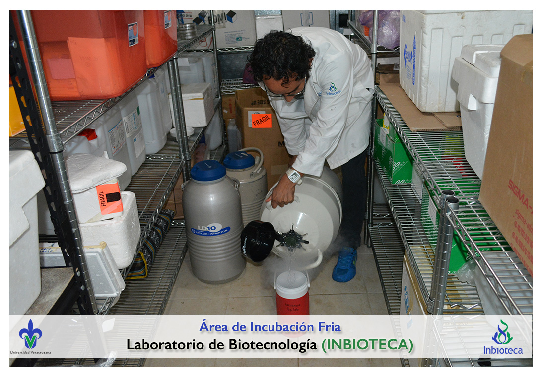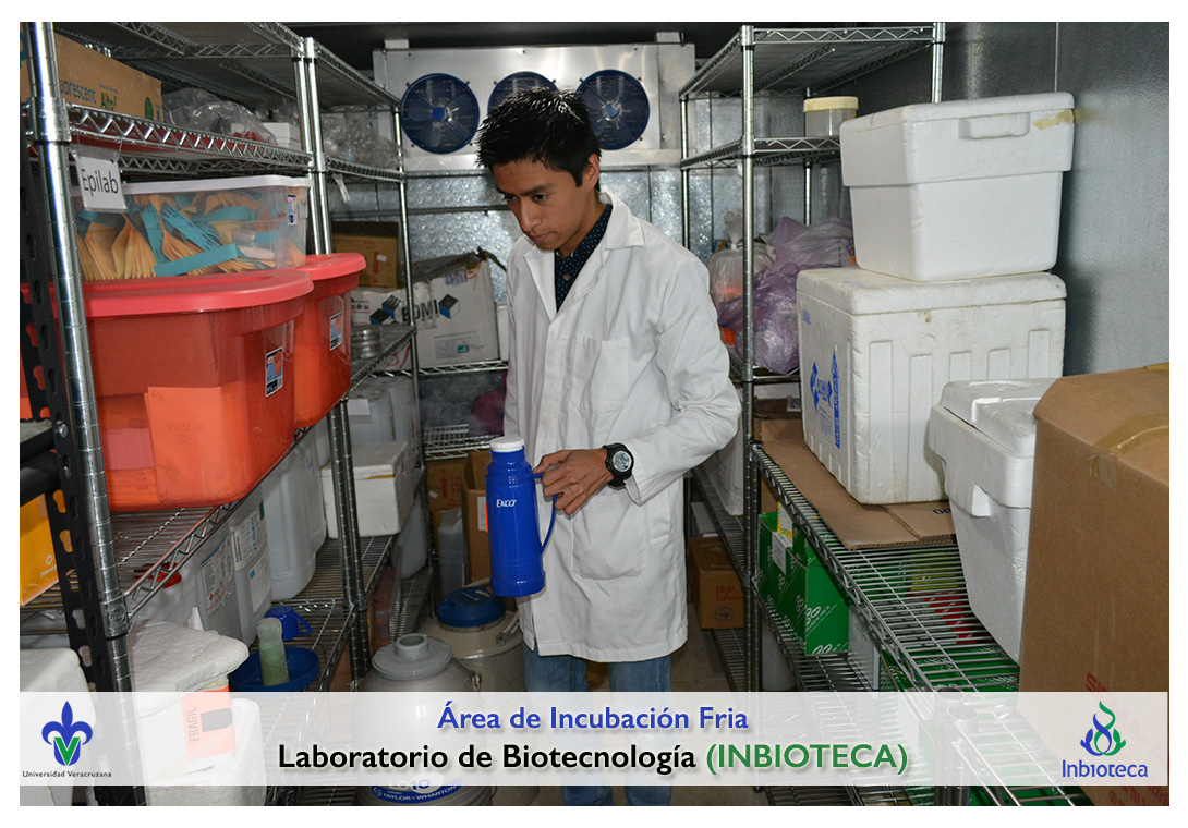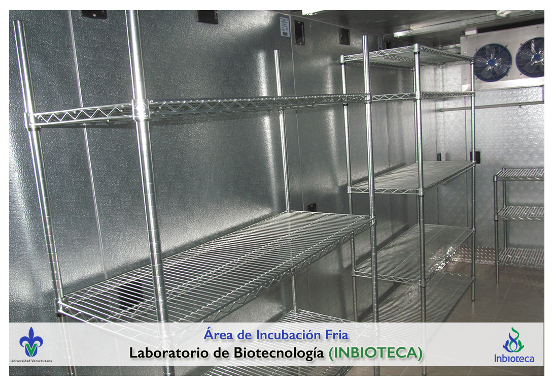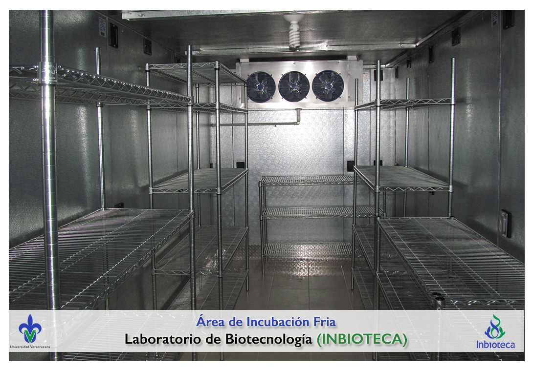 El Cuarto Frío es un espacio de 5.28 X 2.20 m, contenido dentro de una caseta de metal hecha a la medida que fue habilitado por el Dr. Mario A. Arteaga Vázquez, la Dra. Ana E. Dorantes Acosta y la Dra. Lourdes G. Iglesias Andreu con fondos de CONACYT gestionados por cada uno de los investigadores antes mencionados. El área brinda espacios de estantes para el almacenamiento a corto y largo plazo de diversos tipos de materiales incluyendo germoplasma, material vegetal, muestras biológicas, reactivos y tanques con nitrógeno líquido. El área debe mantenerse en una temperatura de 4oC.