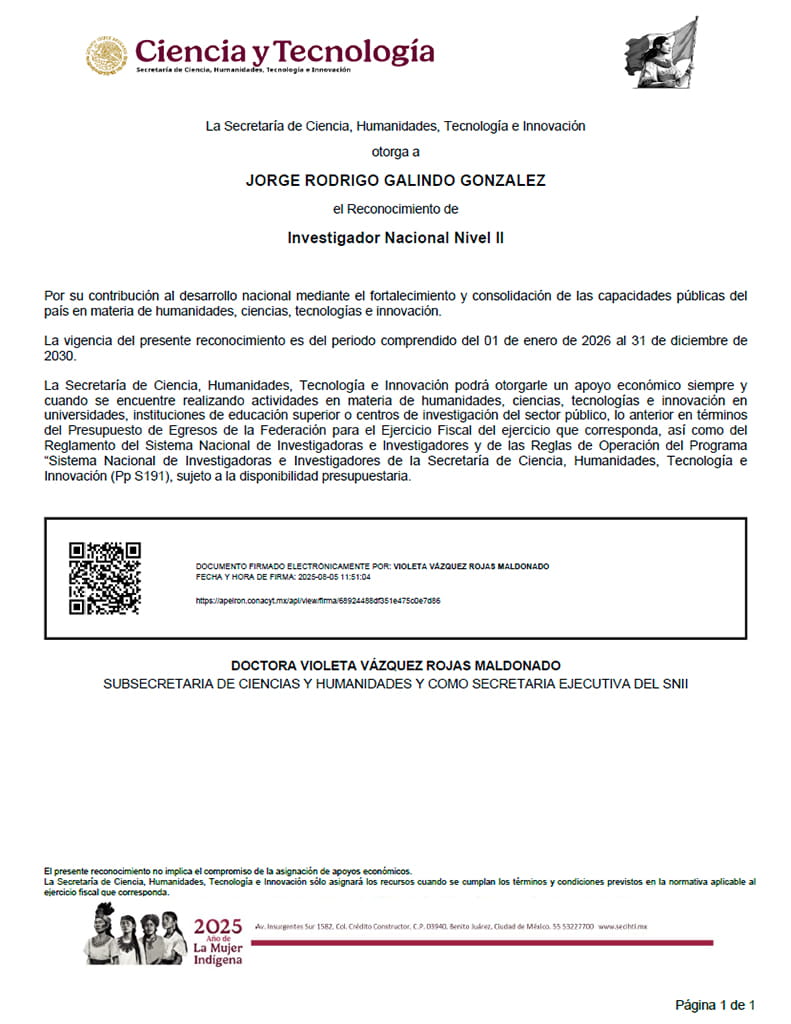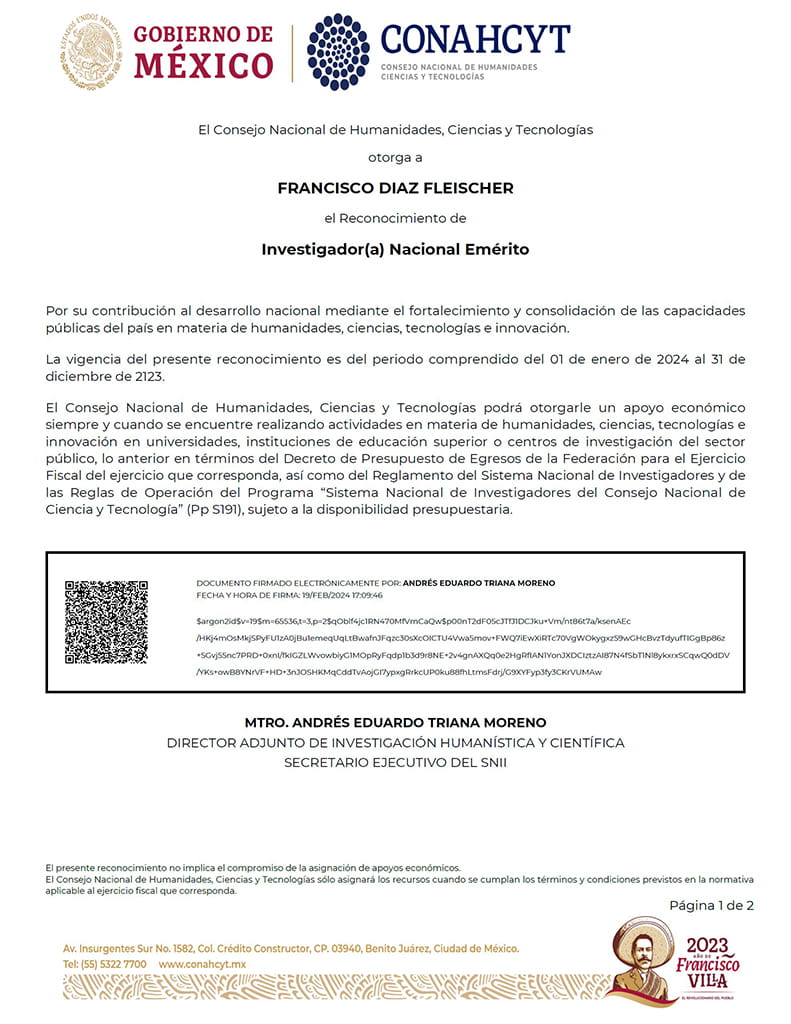 El Sistema Nacional de Investigadoras e Investigadores fue creado Por Acuerdo Presidencial publicado en el Diario Oficial de la Federación el 26 de julio de 1984, para reconocer la labor de las personas dedicadas a producir conocimiento científico y tecnología. El reconocimiento se otorga a través de la evaluación por pares y consiste en otorgar el nombramiento de investigador nacional. Esta distinción simboliza la calidad y prestigio de las contribuciones científicas.
