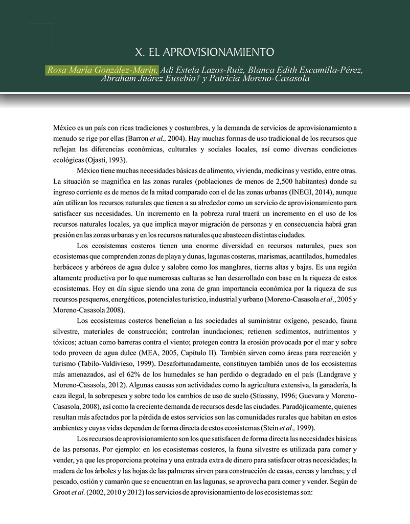 González-Marín R.M., Lazos-Ruíz A.E., Escamilla-Pérez B.E., Juárez-Eusebio A.† y Moreno-Casasola P. (2016). El Aprovisionamiento Pp. 160-184. ISBN 978-607-7579-57-1 |