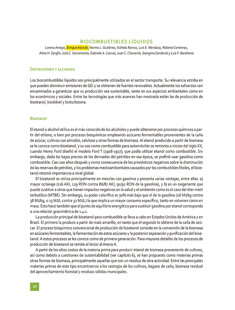 Lorena Amaya, Enrique Alarcón, Norma L. Gutiérrez, Esthela Ramos, Luis E. Mendoza, Roberto Contreras, Alma H. Serafín, Julio C. Sacramento, Gabriela A. Cuevas, Juan C. Chavarría, Georgina Sandoval y Luis F. Barahona (2016). Biocombustibles líquidos Pp. 34-54. ISBN: 978-607-8389-11-7. |