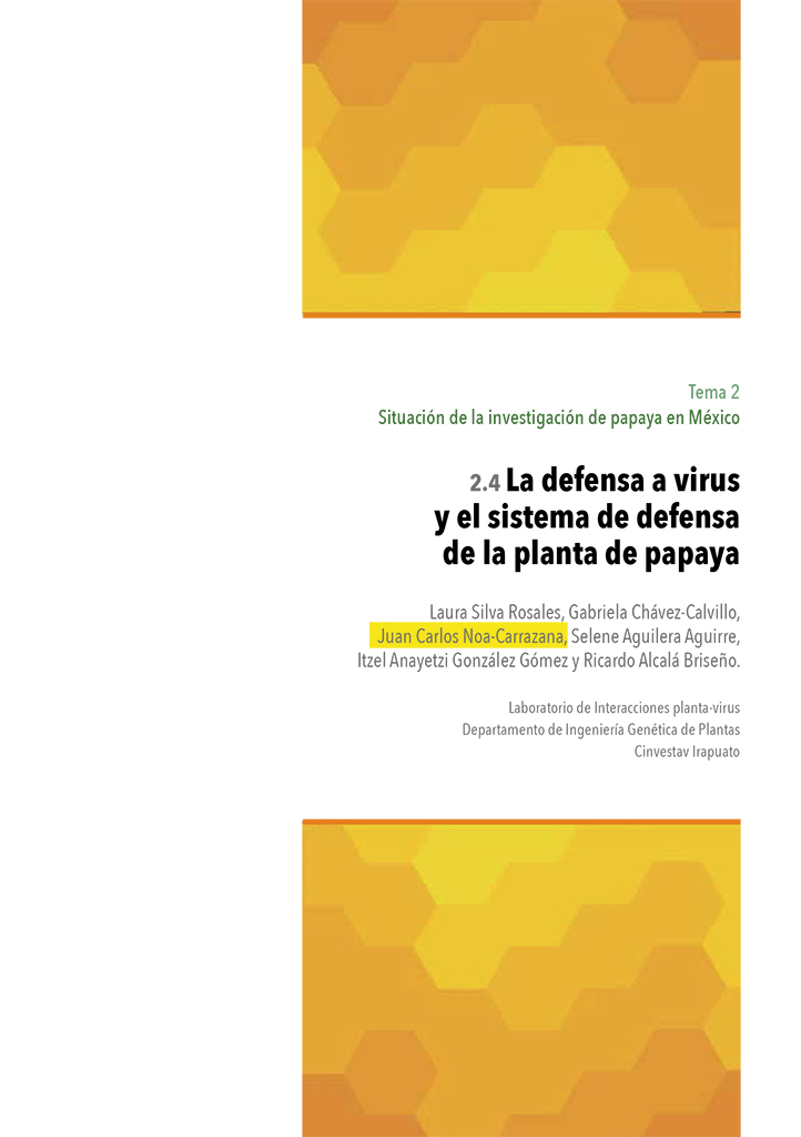 Laura Silva Rosales, Gabriela Chávez-Calvillo, Juan Carlos Noa-Carrazana, Selene Aguilera Aguirre, Itzel Anayetzi González Gómez y Ricardo Alcalá Briseño (2017). La defensa a virus y el sistema de defensa de la planta de papaya Pp. 73-76. Print ISBN: 978-6077823377 |