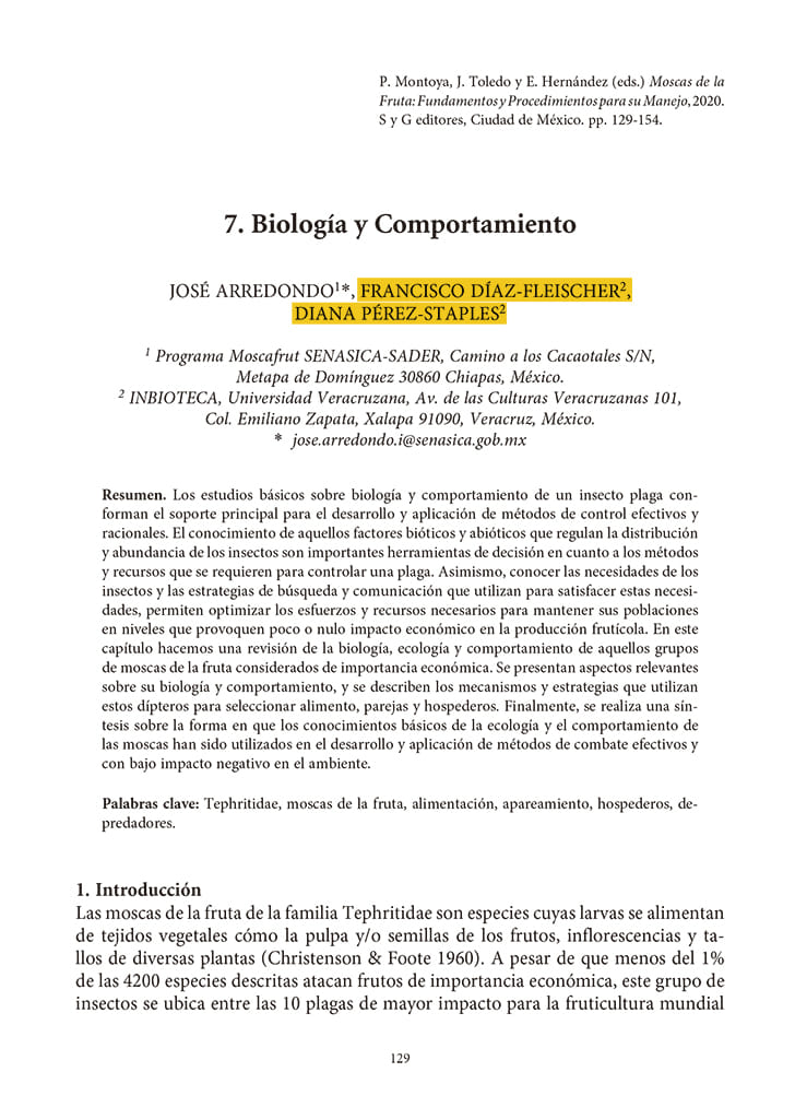 José Arredondo, Francisco Díaz-Fleischer, Diana Pérez-Staples (2020). Biología y Comportamiento Abril 2020, 129-154 pp. ISBN: 978-607-7552-06-2 |