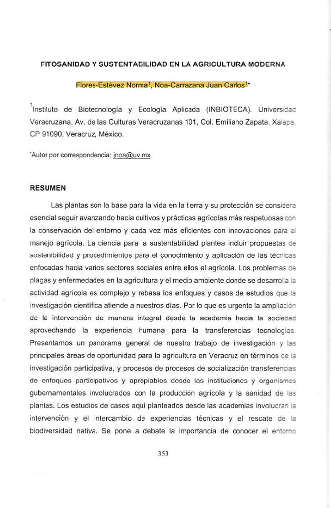 Flores-Estévez, Norma y Noa-Carrazana, Juan Carlos (2023). Fitosanidad y sustentabilidad en la agricultura moderna Primera edición: 2023, 353-366 pags. ISBN-13: 978-3-330-09687-5, ISBN-10: 333009687X |
