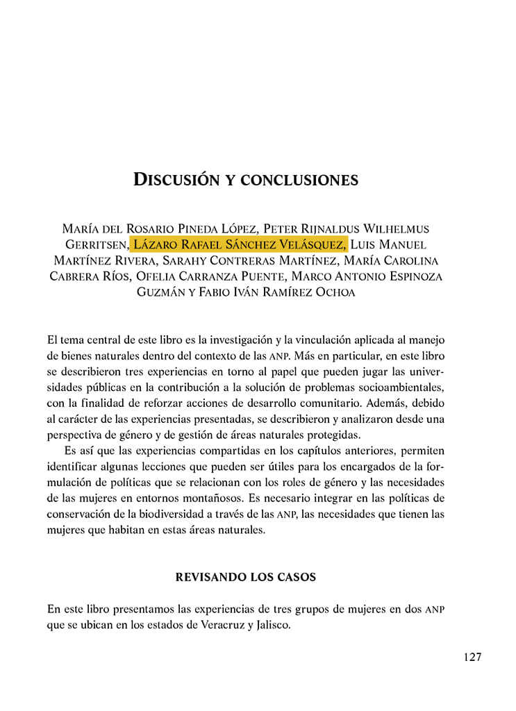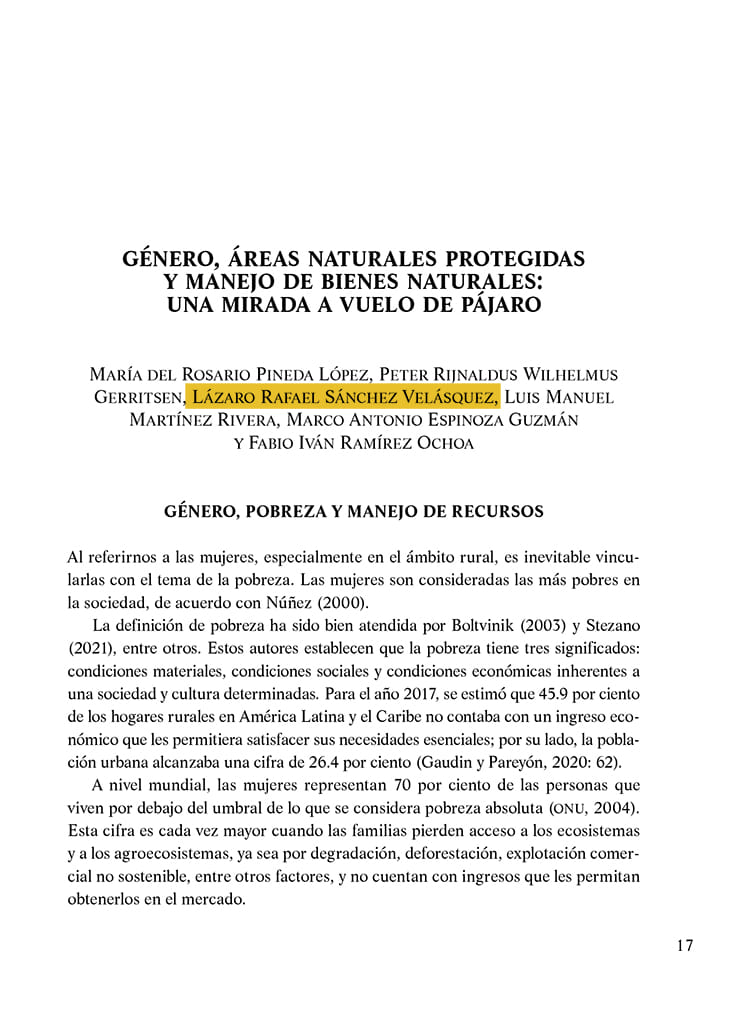 Pineda López Ma. del R., Gerritsen P.R.W., Sánchez Velásquez L.R., Martínez Rivera L.M., Espinoza Guzmán M.A., y Ramírez Ochoa F.I. (2024). Género, Áreas Naturales Protegidas y Manejo de Bienes Naturales: Una Mirada a Vuelo de Pájaro. Mayo 2024, Primera edición: 17-47 pp. DOI: 10.25009/uv.2997.1807 ISBN: 978-607-8969-47-0 |