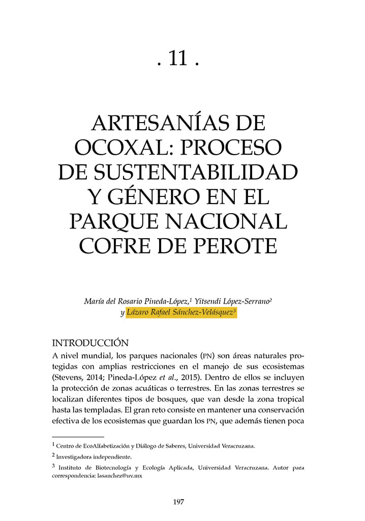 María del Rosario Pineda-López, Yitsendi López-Serrano y Lázaro Rafael Sánchez-Velásquez (2024). Artesanías de ocoxal: Proceso de sustentabilidad y género en el Parque Nacional Cofre de Perote Septiembre 2024, primera Edición: 197-207 pp. DOI: 10.25009/uv.8969852 ISBN: 9786078969852 |