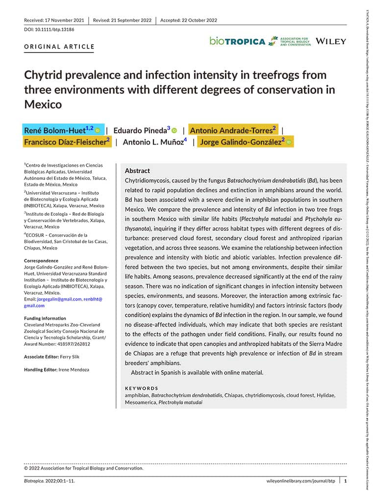 Chytrid prevalence and infection intensity in treefrogs from three environments with different degrees of conservation in Mexico