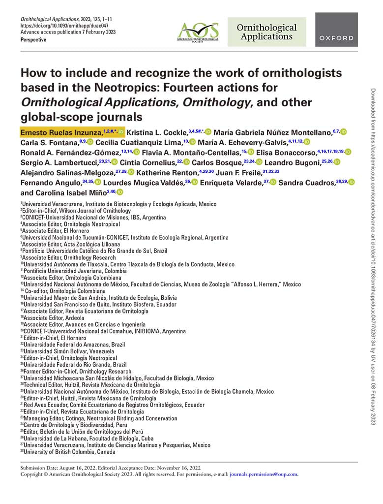 How to include and recognize the work of ornithologists based in the Neotropics: Fourteen actions for Ornithological Applications, Ornithology, and other global-scope journals