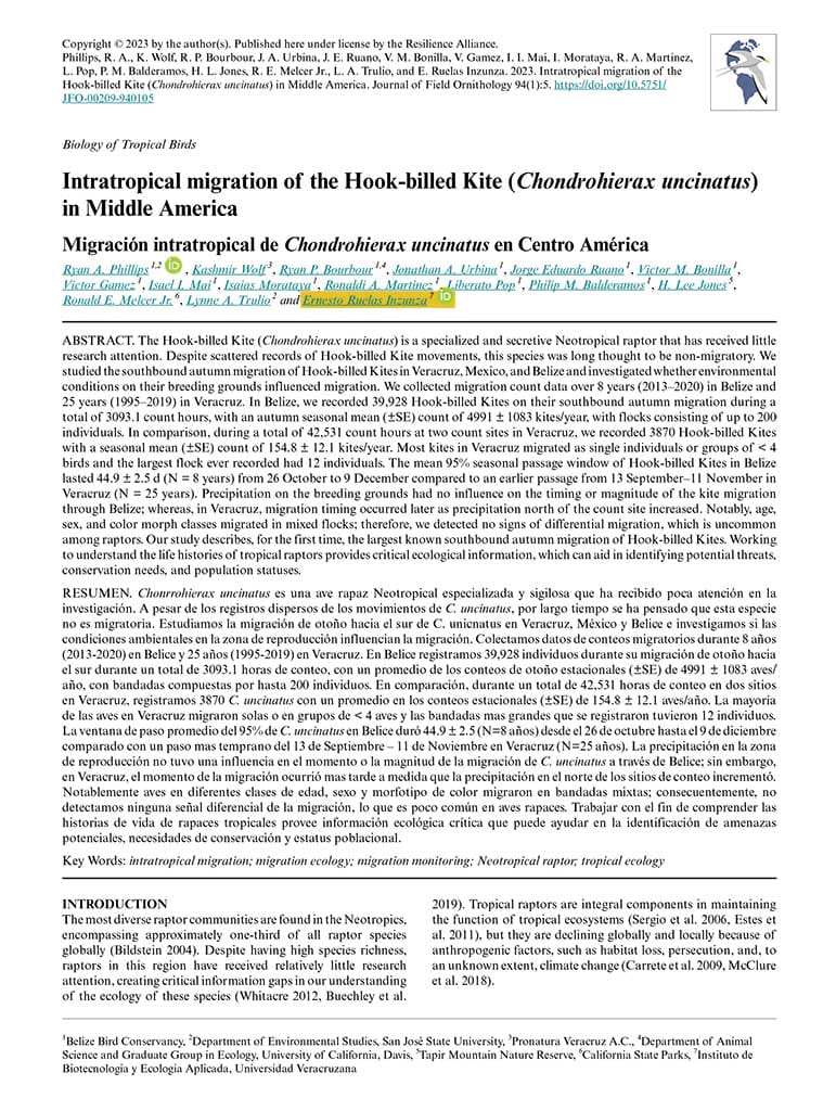 Intratropical migration of the Hook-billed Kite (Chondrohierax uncinatus) in Middle America