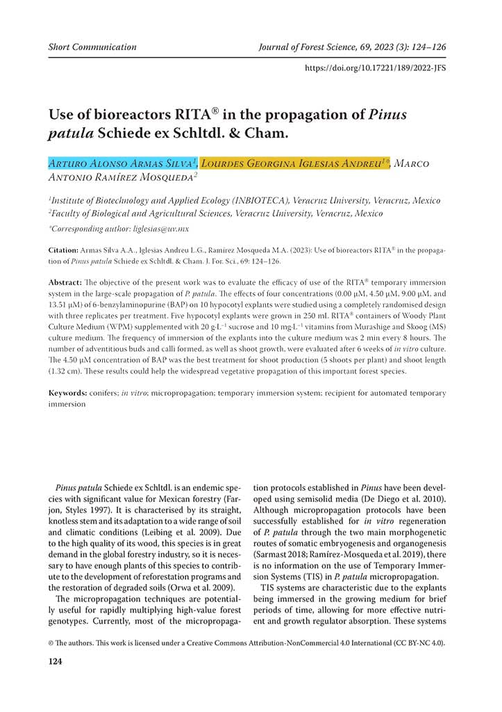 Use of bioreactors RITA® in the propagation of Pinus patula Schiede ex Schltdl. & Cham.
