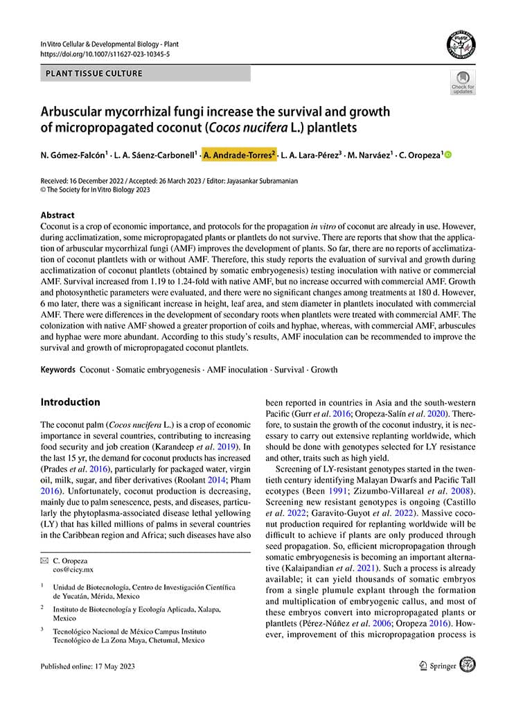 Arbuscular mycorrhizal fungi increase the survival and growth of micropropagated coconut (Cocos nucifera L.) plantlets