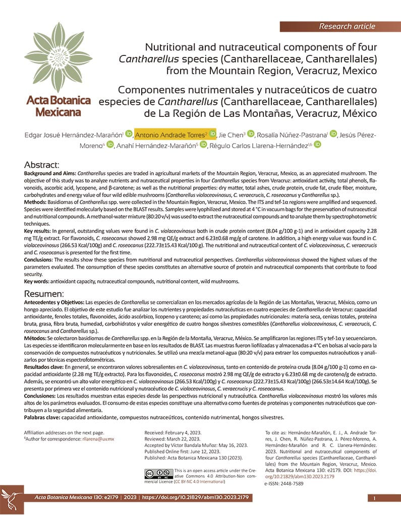 Nutritional and nutraceutical components of four Cantharellus species (Cantharellaceae, Cantharellales) from the Mountain Region, Veracruz, Mexico