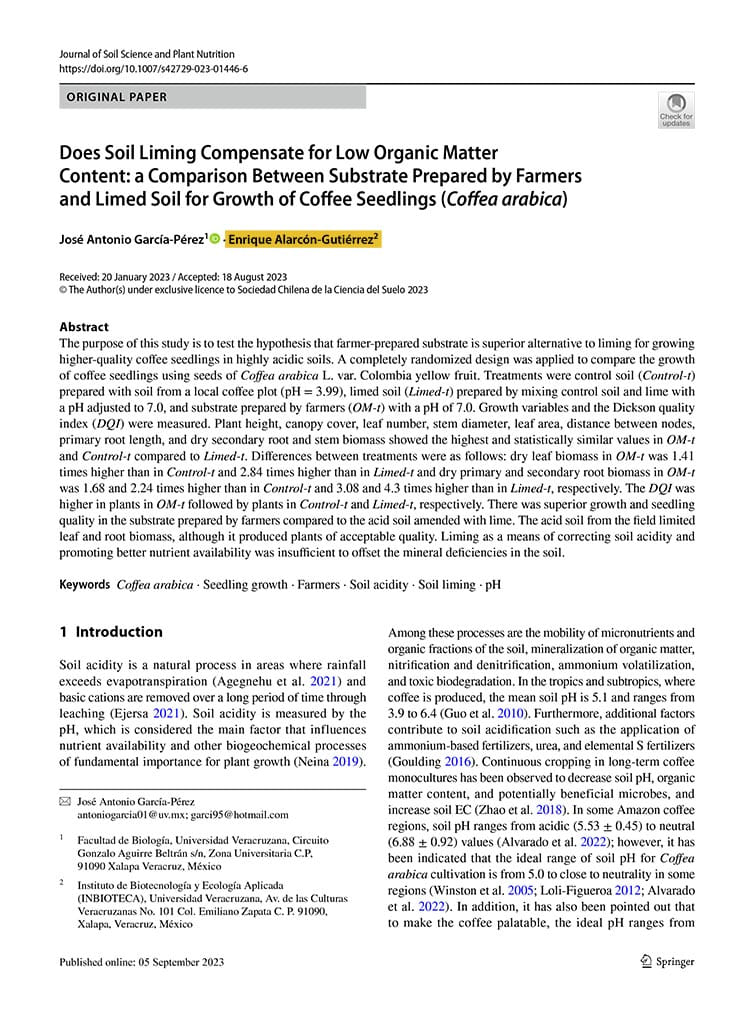 Does Soil Liming Compensate for Low Organic Matter Content: a Comparison Between Substrate Prepared by Farmers and Limed Soil for Growth of Coffee Seedlings (Coffea arabica)