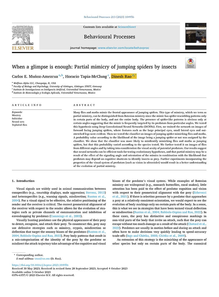 When a glimpse is enough: Partial mimicry of jumping spiders by insects