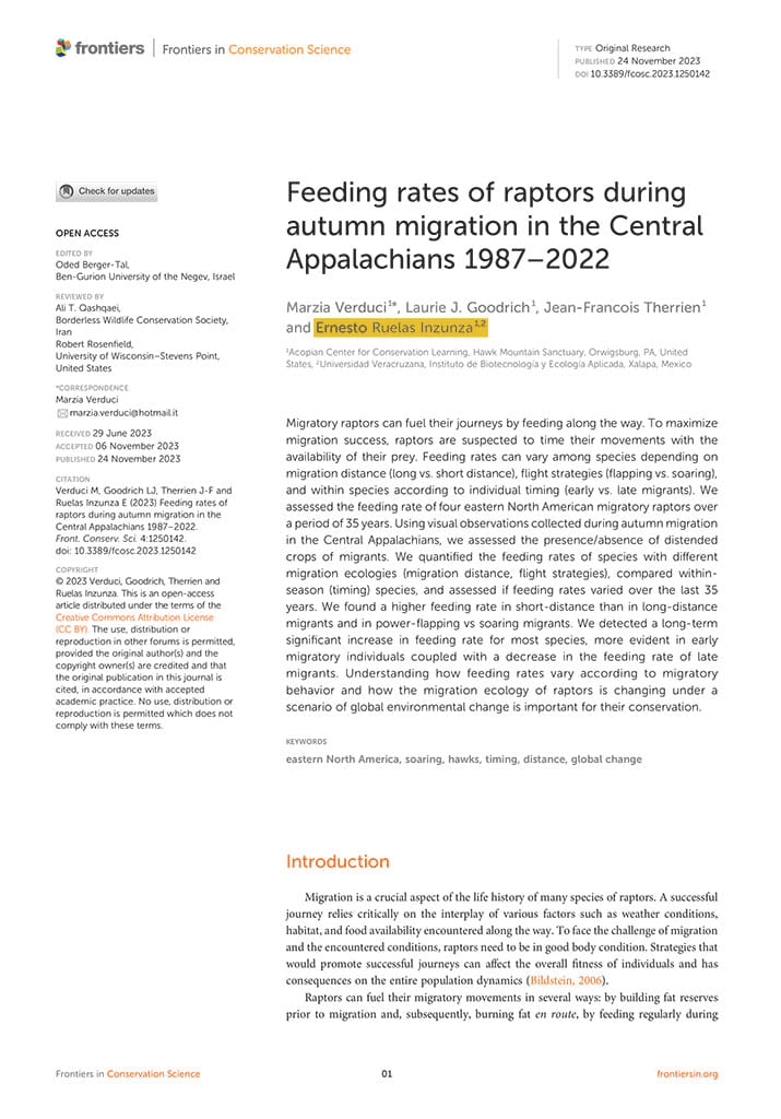 Feeding rates of raptors during autumn migration in the Central Appalachians 1987–2022