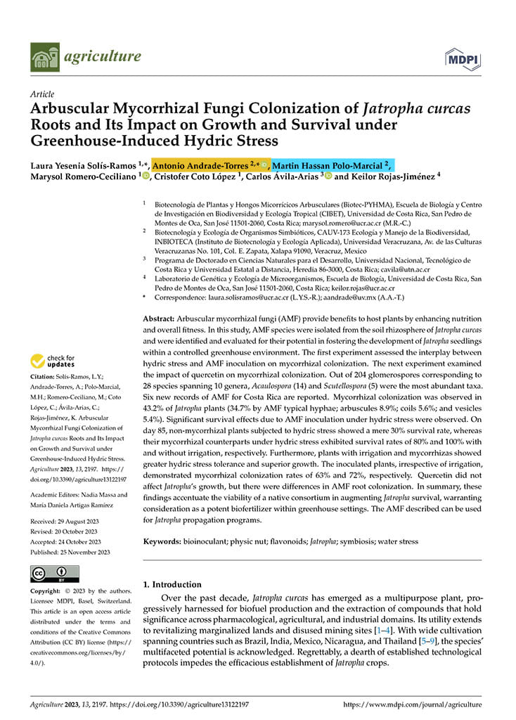 Arbuscular Mycorrhizal Fungi Colonization of Jatropha curcas Roots and Its Impact on Growth and Survival under Greenhouse-Induced Hydric Stress