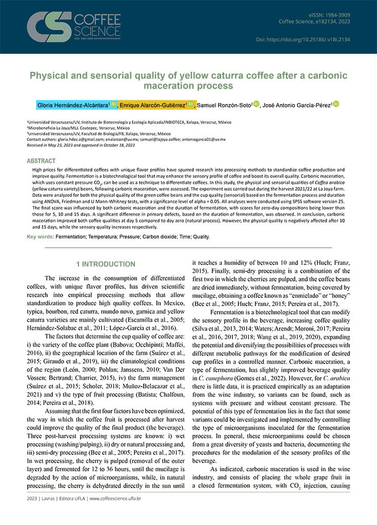 Physical and sensorial quality of yellow caturra coffee after a carbonic maceration process