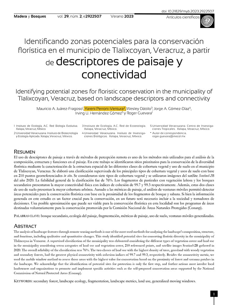 Identifying potential zones for floristic conservation in the municipality of Tlalixcoyan, Veracruz, based on landscape descriptors and connectivity