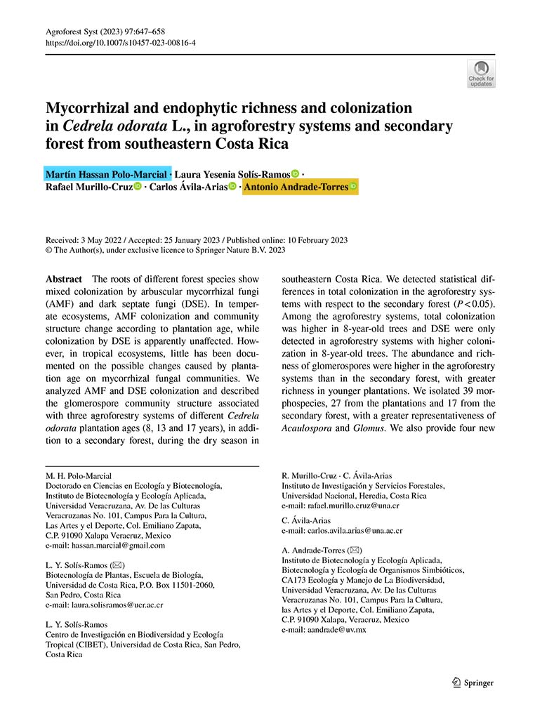 Mycorrhizal and endophytic richness and colonization in Cedrela odorata L., in agroforestry systems and secondary forest from southeastern Costa Rica