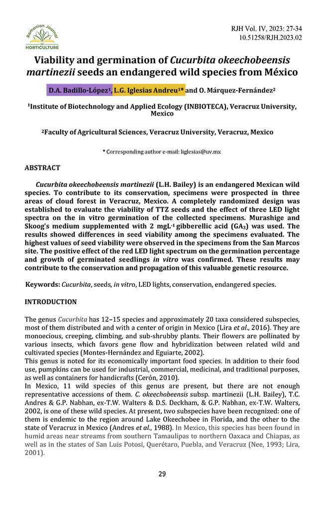 Viability and germination of Cucurbita okeechobeensis martinezii seeds an endangered wild species from México