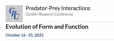 Participante: Rao, Dinesh V. Dr. Autores: Dinesh Rao Título: Colour and Movement in Predator-Prey Interactions Tipo de participación: Ponencia Nombre del evento: Predator-Prey Interactions Organizador: Gordon Research Conference (GRC) Lugar y fecha: Lucca (Barga), Italia – 16/10/2022 – 21/10/2022 Tipo de evento: Internacional |