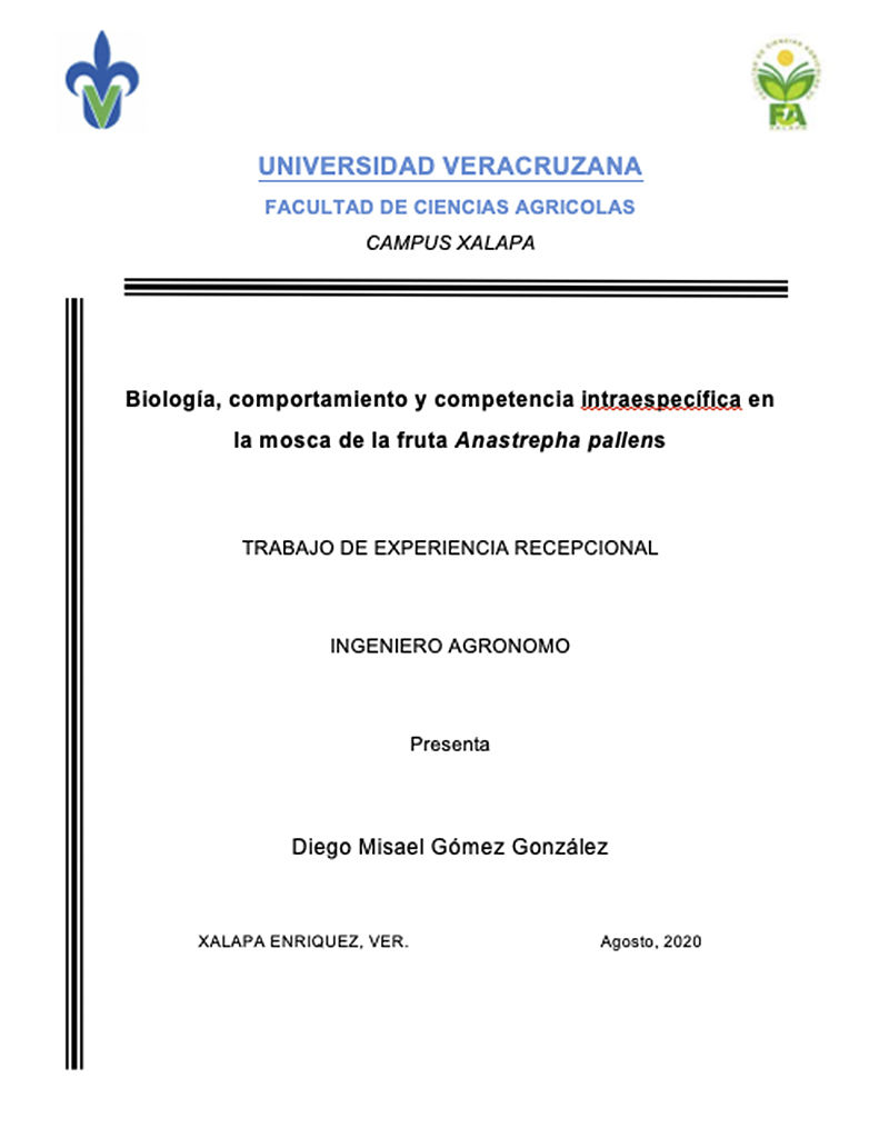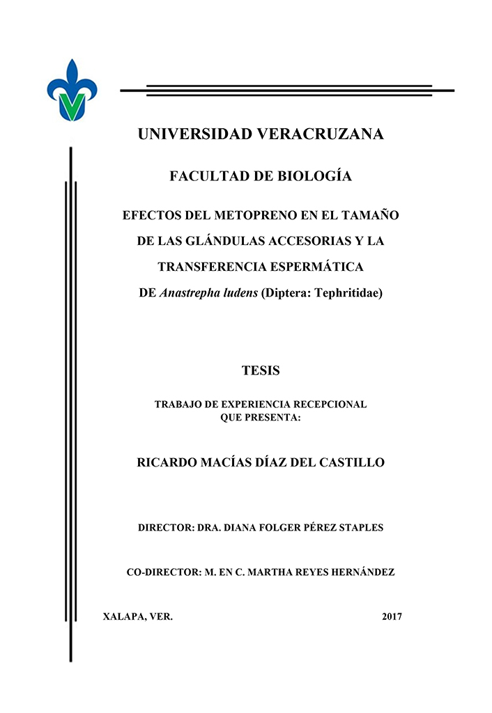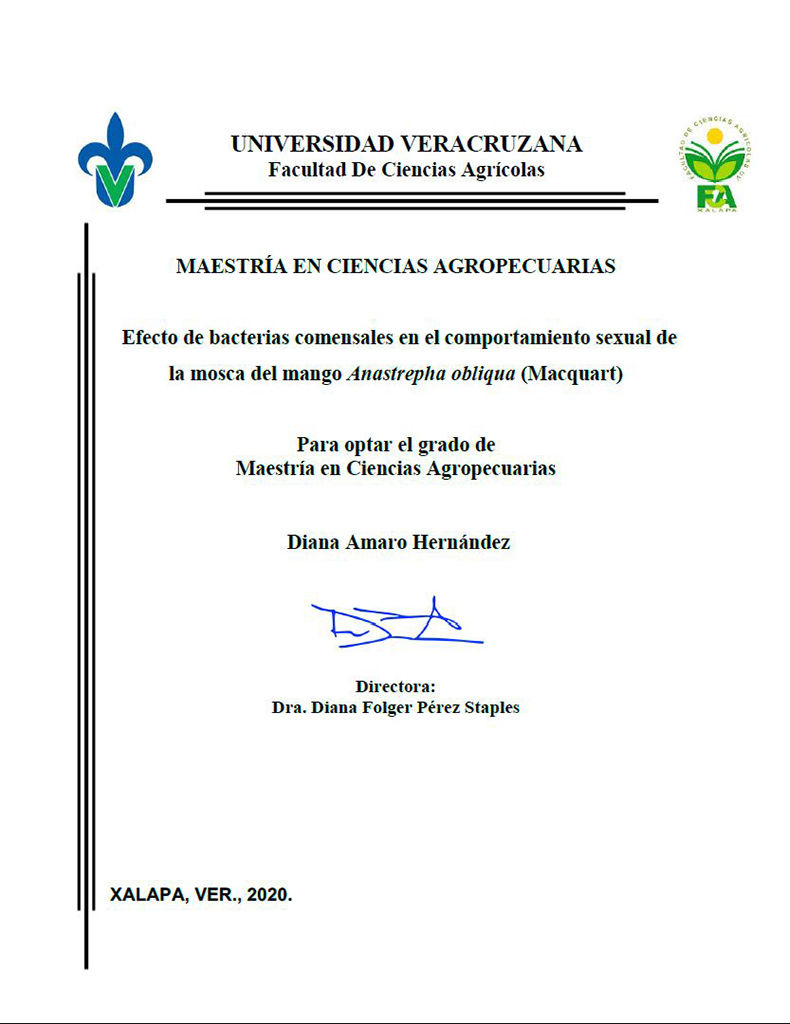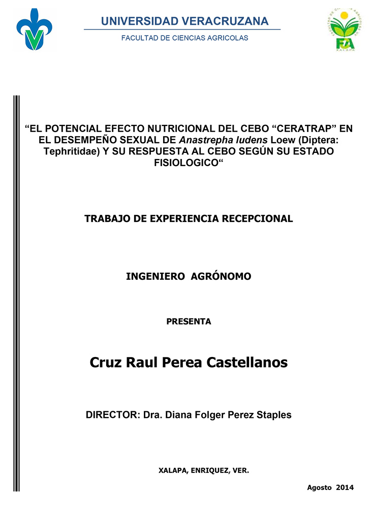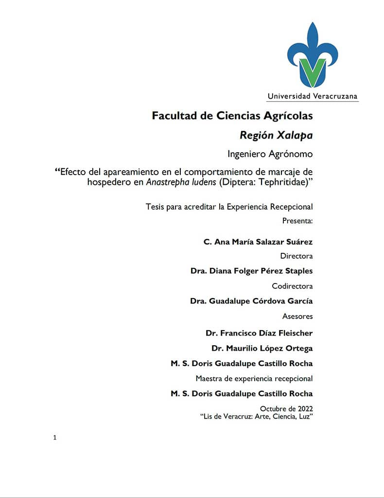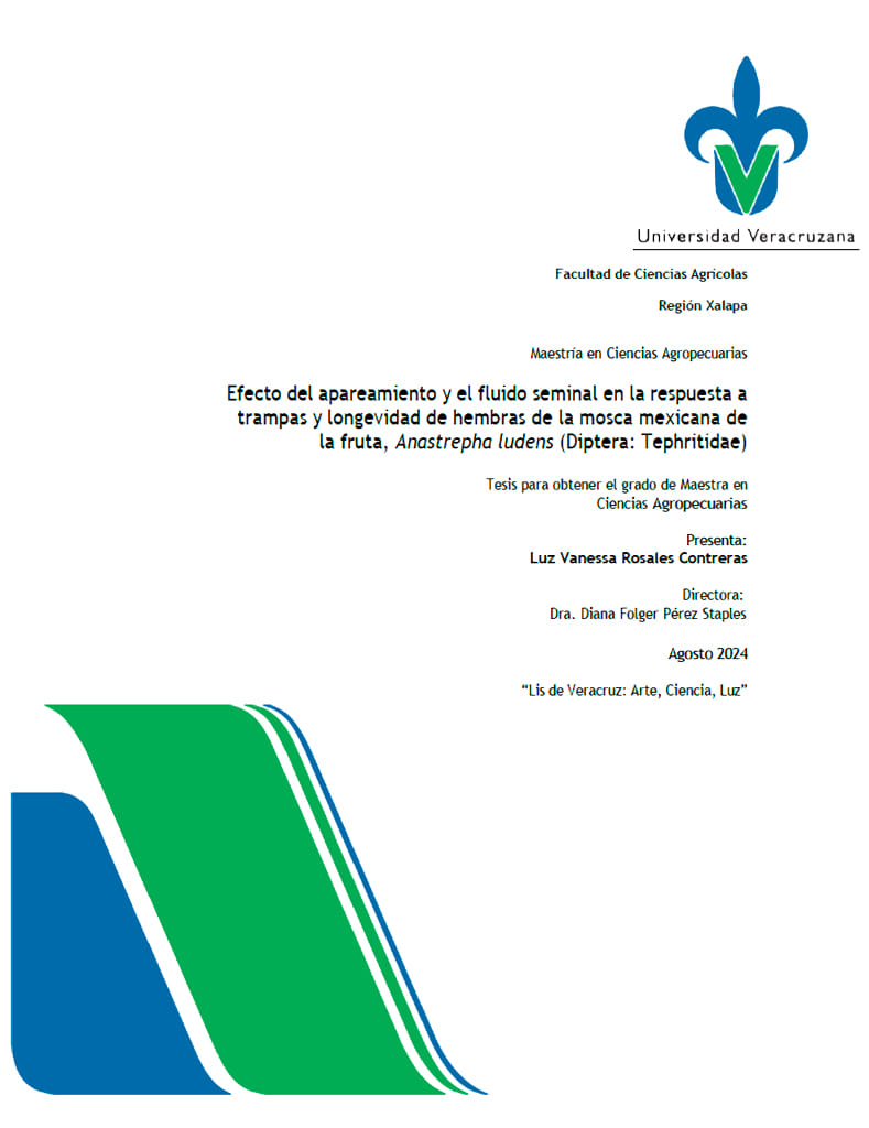 Tesis: Efecto del apareamiento y el fluido seminal en la respuesta a trampas y longevidad de hembras de la mosca mexicana de la fruta, Anastrepha ludens (Diptera: Tephritidae)