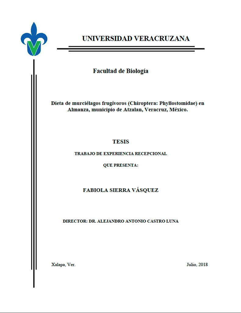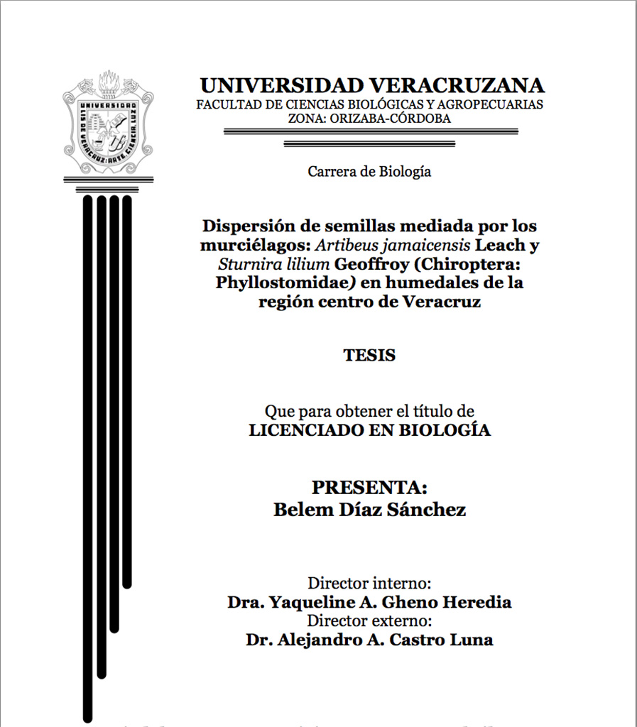 Tesis: Dispersión de semillas por murciélagos en un paisaje fragmentado de selva mediana del centro de Veracruz, México.