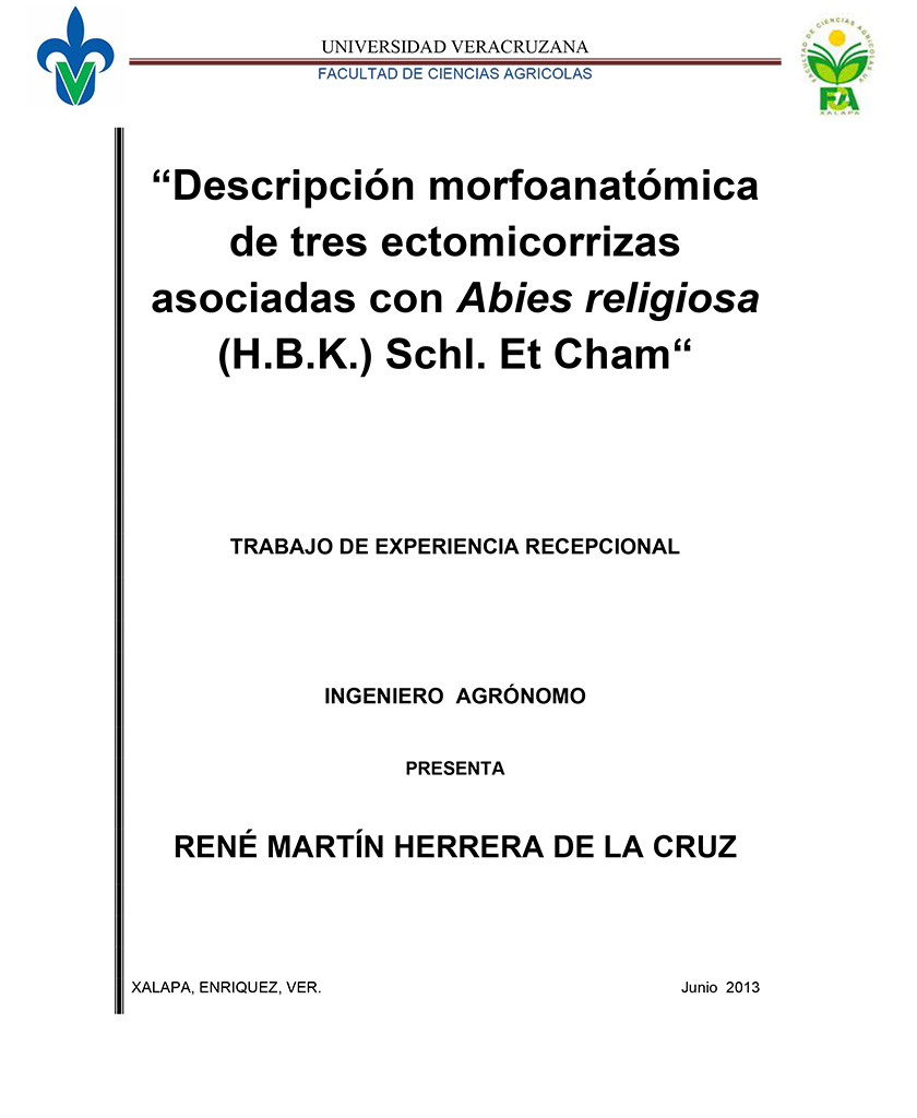 Tesis: Caracterización molecular de ectomicorrizas asociadas al bosque de oyamel Abies religiosa (h. B. K.) Schl. Et cham. del cofre de perote, Veracruz, México