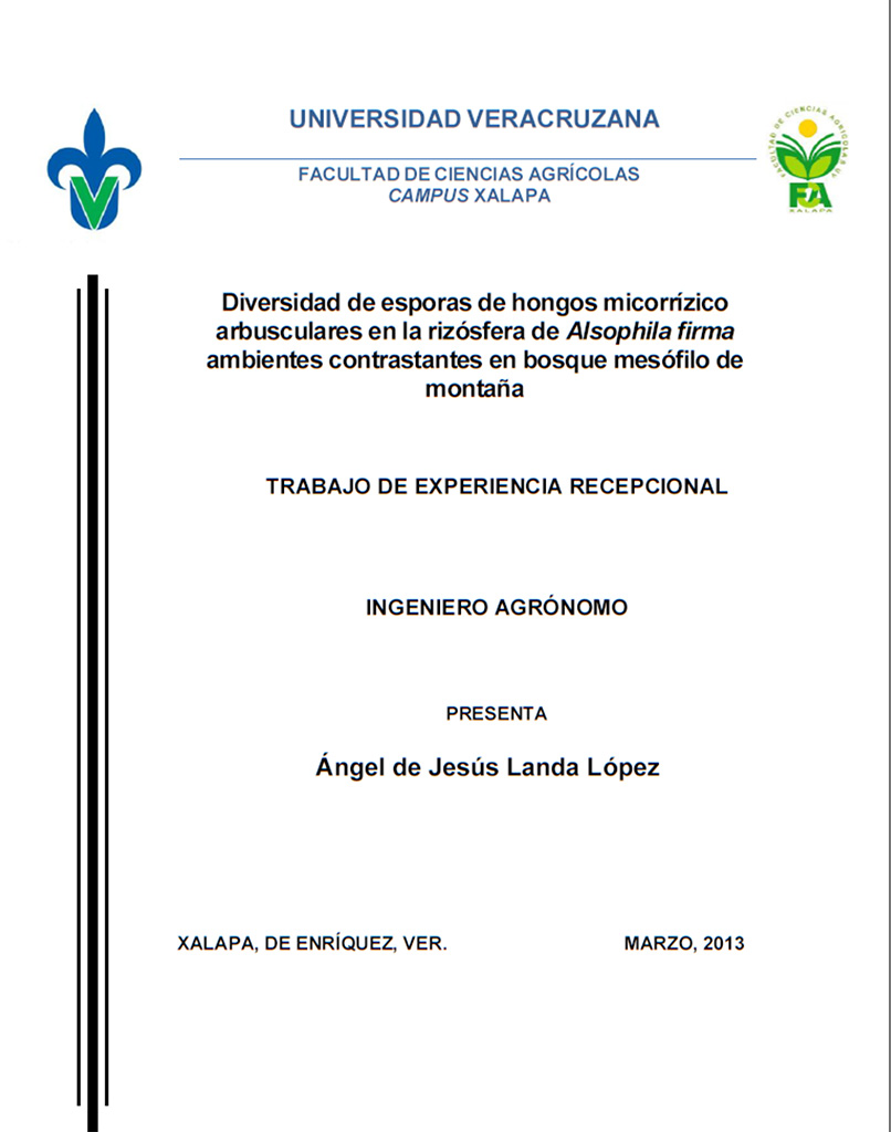 Tesis: Diversidad de hongos micorrícico arbusculares en la rizósfera de Alsophila firma en Bosque Mesófilo de Montaña con diferentes grados de perturbación