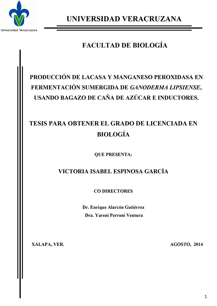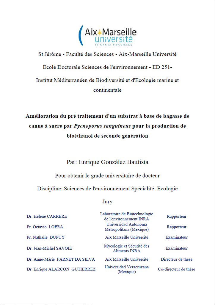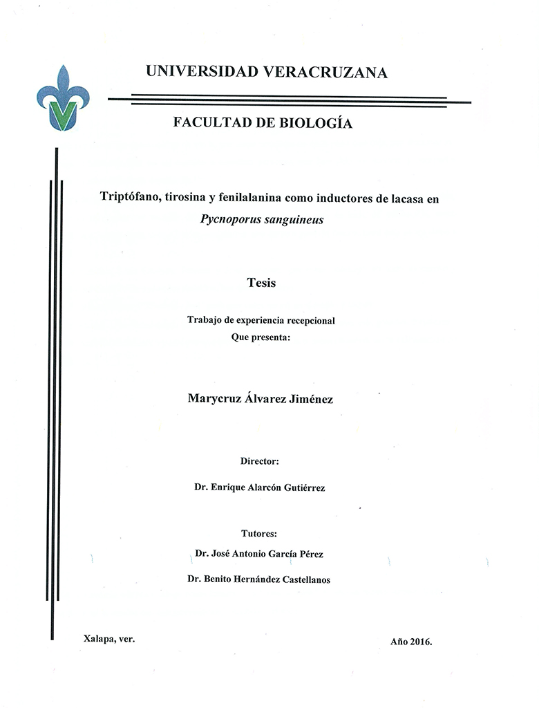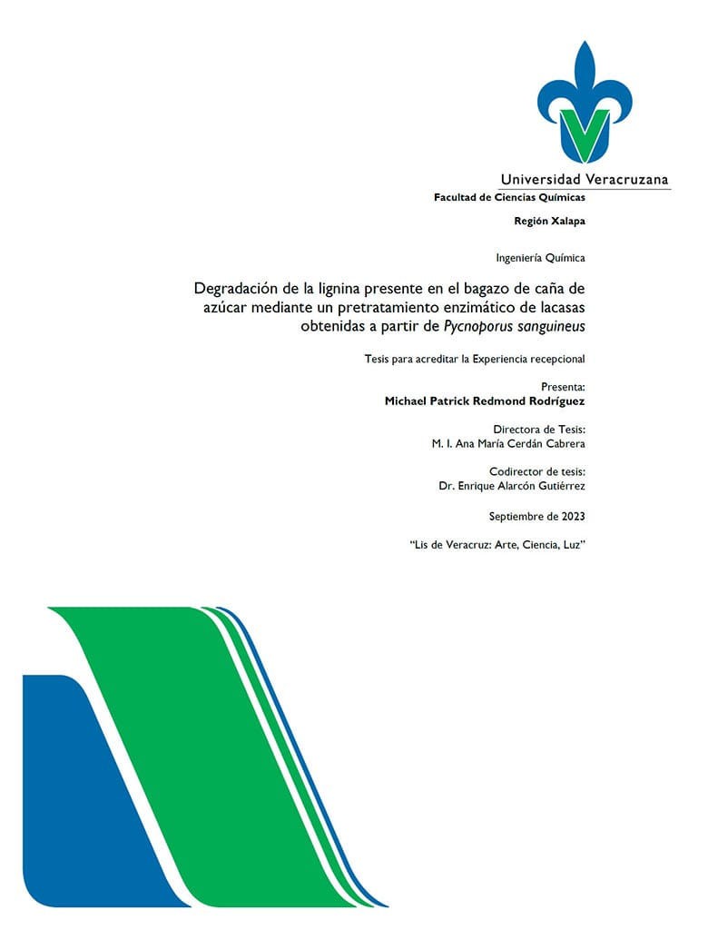 Tesis: Degradación de la lignina presente en el bagazo de caña de azúcar mediante un pretratamiento enzimático de lacasas obtenidas a partir de Pycnoporus sanguineus