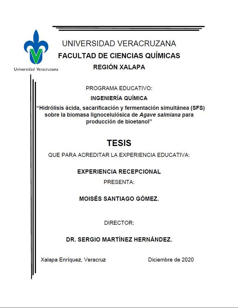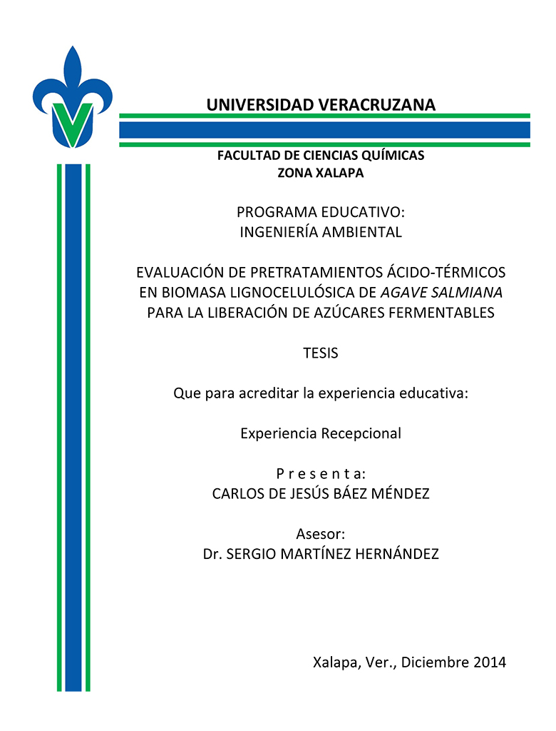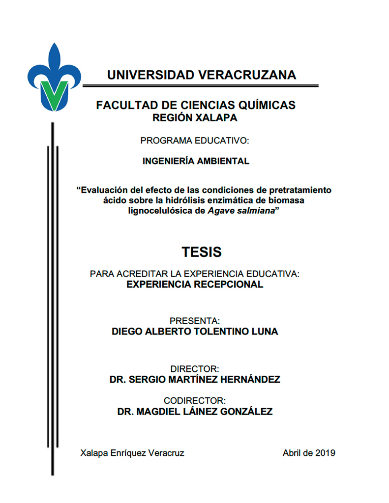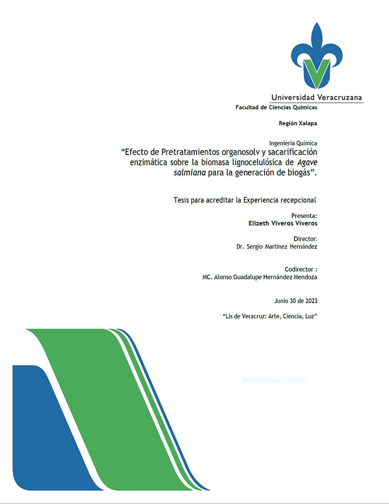 Tesis: Efecto de Pretratamientos organosolv y sacarificación enzimática sobre la biomasa lignocelulósica de Agave salmiana para la generación de biogás