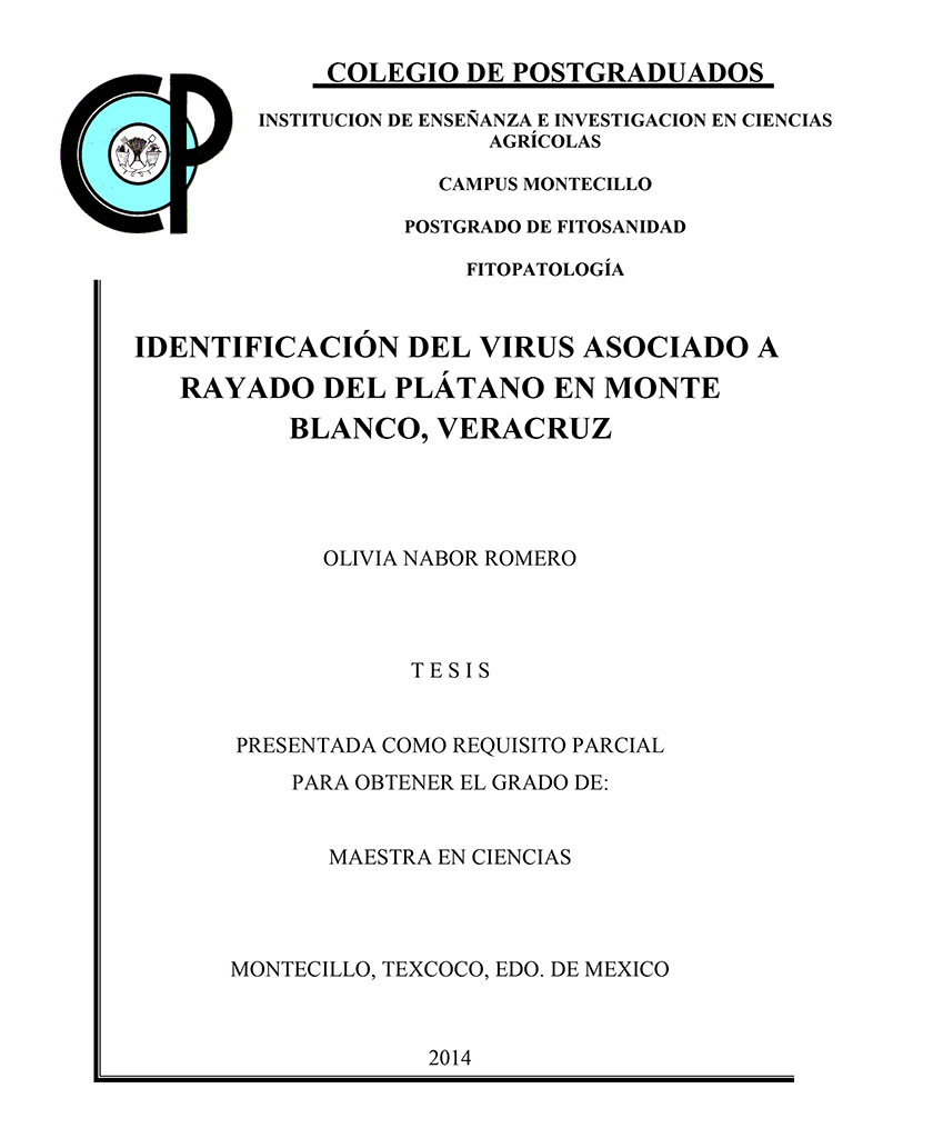 Tesis: Presencia de sigatokas (Mycospharella sp) en parcelas diversificadas de plátanos, en el municipio de Tlapacoyan, Veracruz.