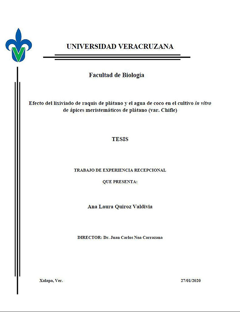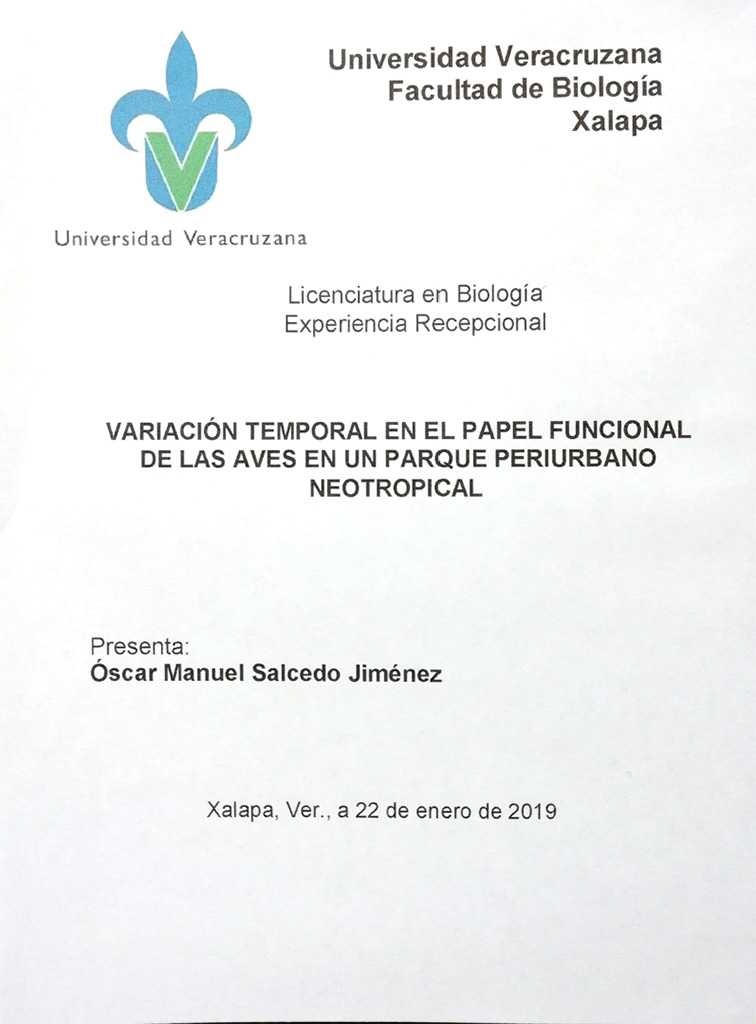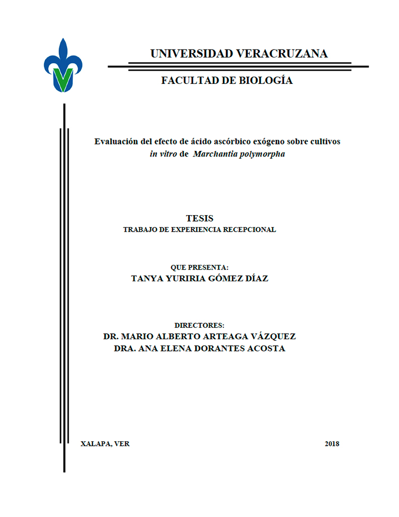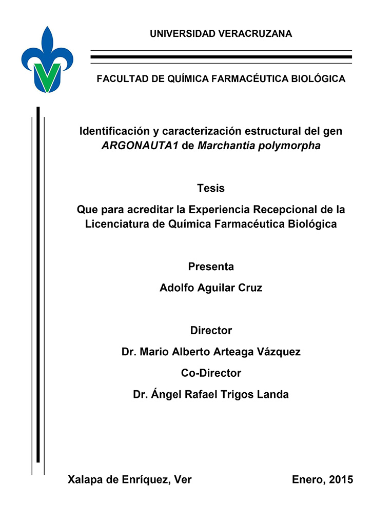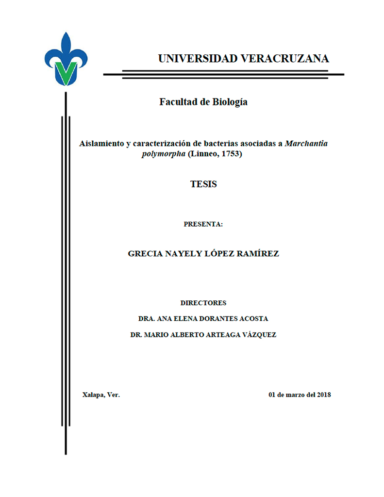 Institución: Facultad de Biología, campus Xalapa, Universidad Veracruzana