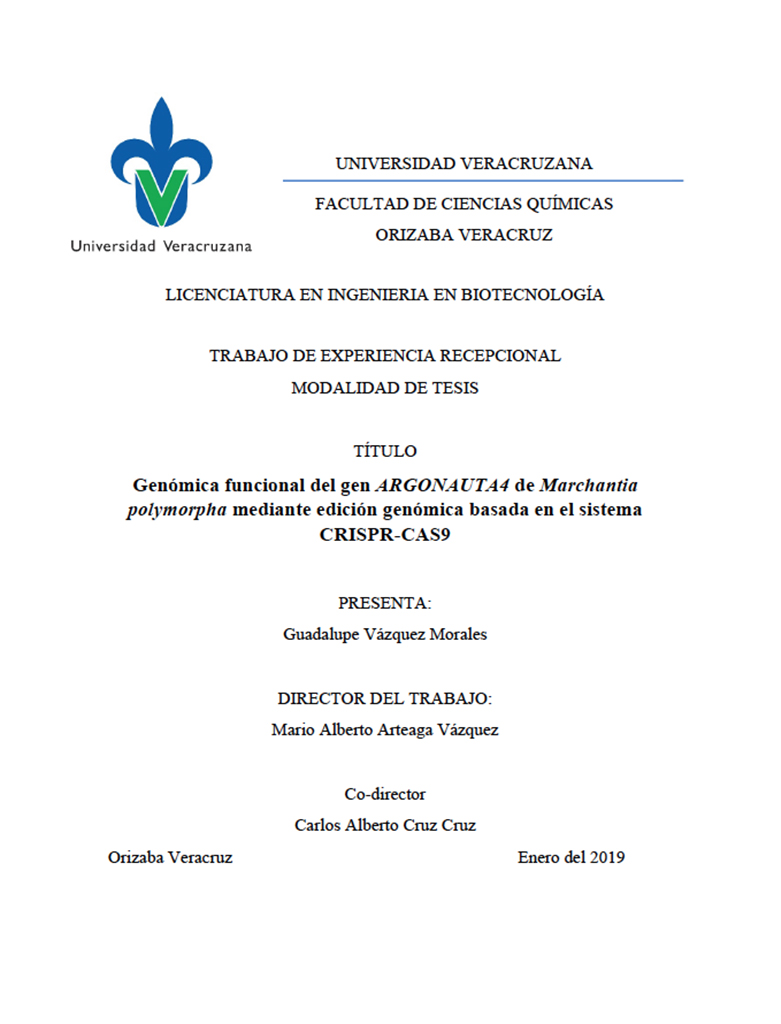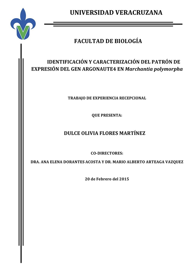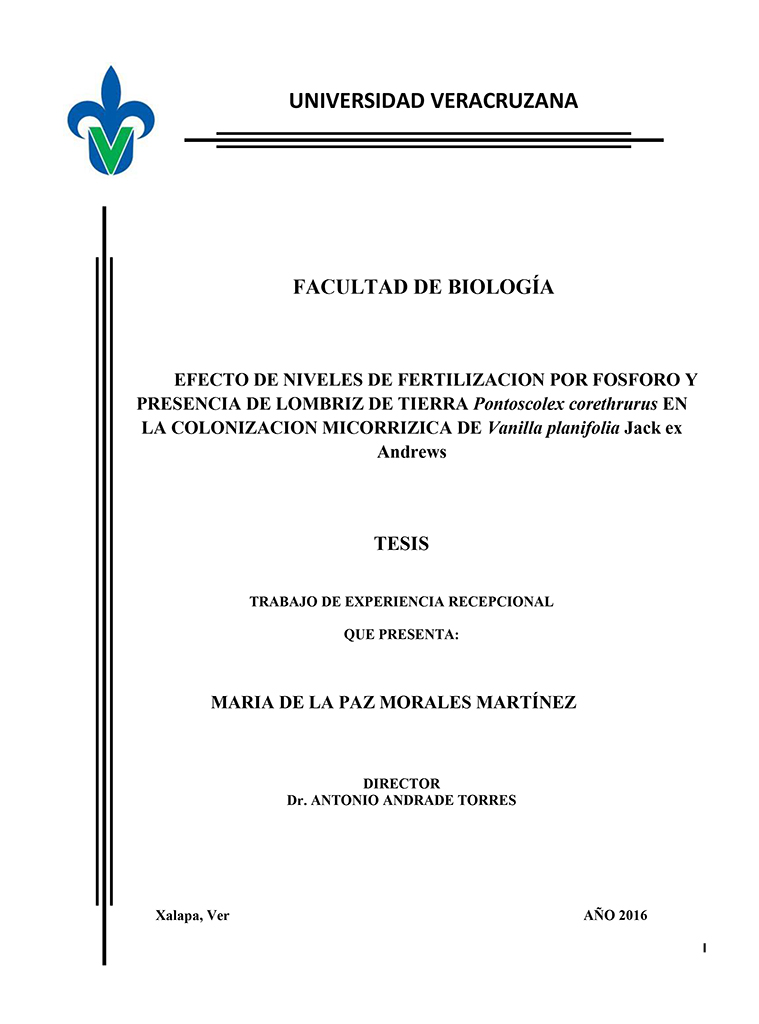 Institución: Facultad de Ciencias Biológicas y Agropecuarias, Córdoba, Universidad Veracruzana
