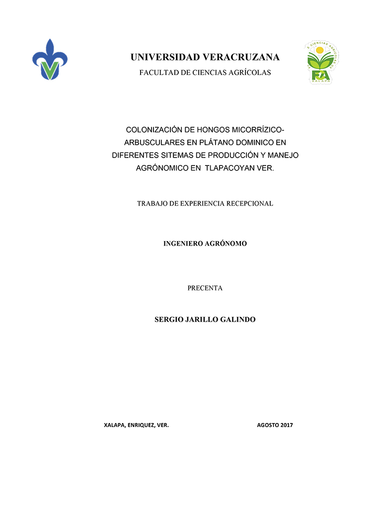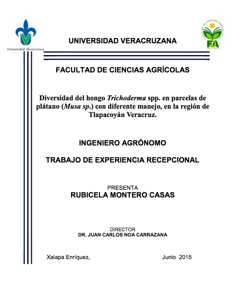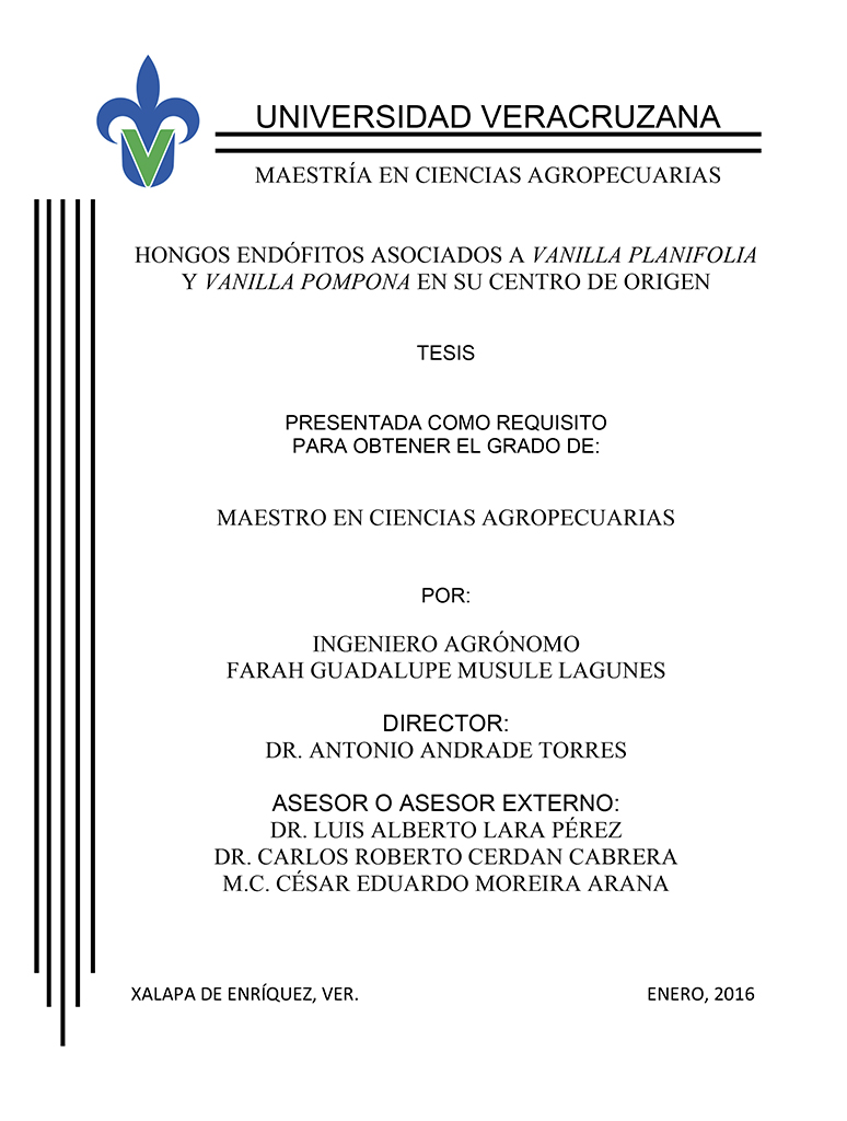 Institución: Facultad de Ciencias Agrícolas, Universidad Veracruzana
