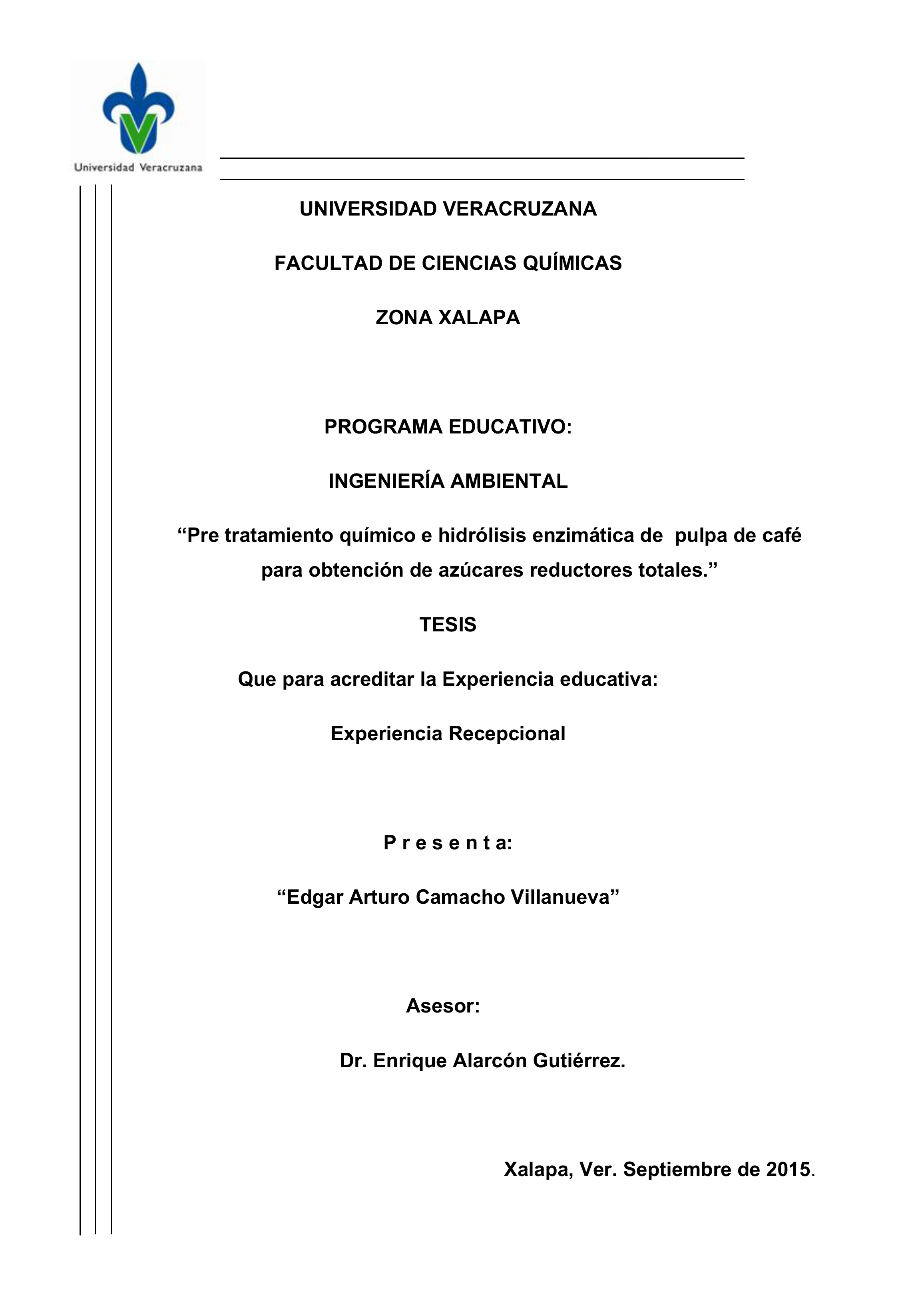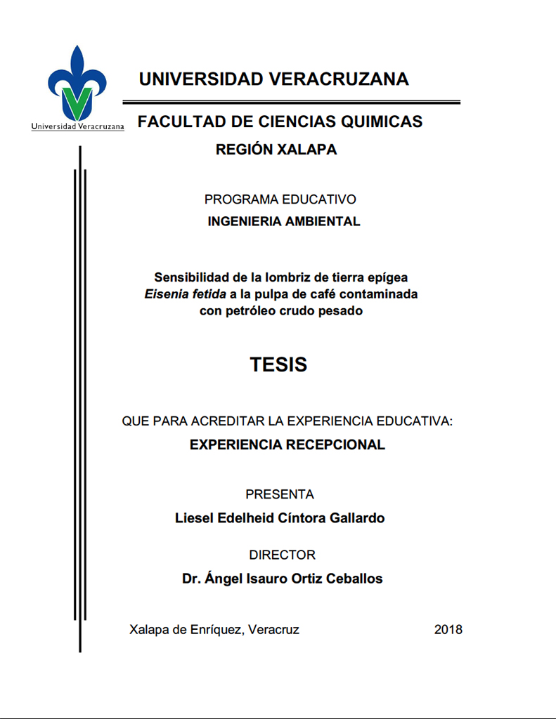 Institución: Facultad de Ciencias Químicas, Región Xalapa, Universidad Veracruzana