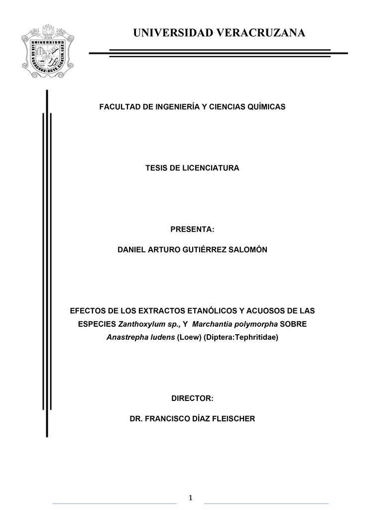 Tesis: Actividad insecticida de extractos del helecho pesma (pteridum auilinum (l) kuhn) y el laurel silvestre (litsea glauces lens kunth) sobre el tefrítido (anastrepha ludens (loew)