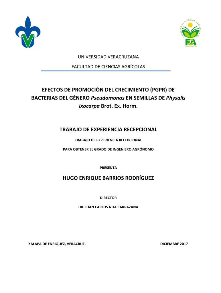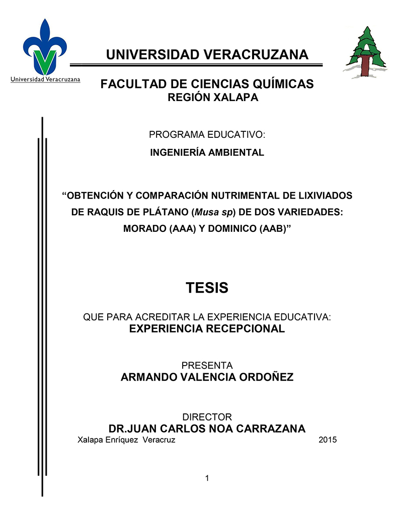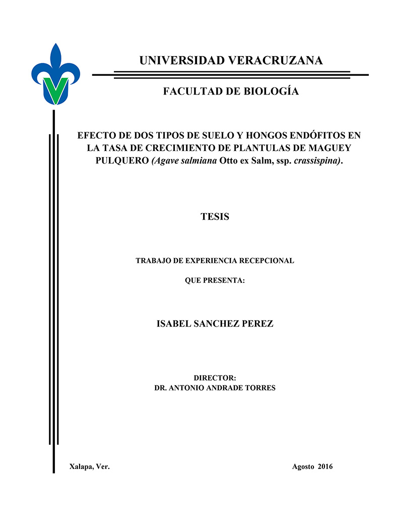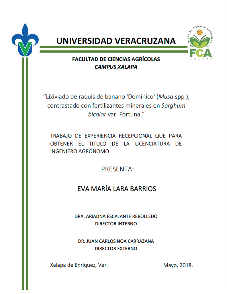 Institución: Facultad De Ciencias Agricolas, Campus Xalapa, Universidad Veracruzana.