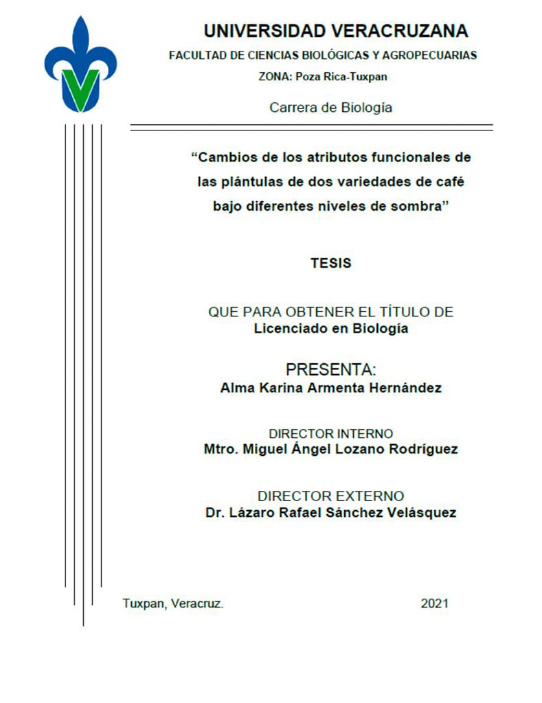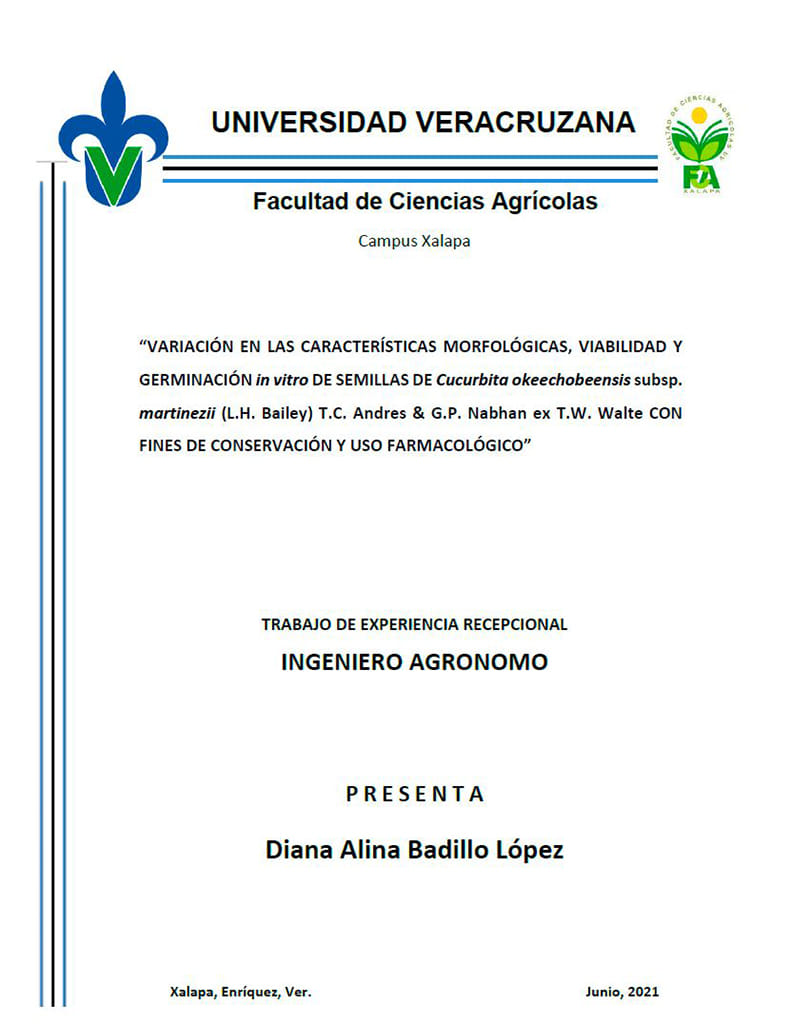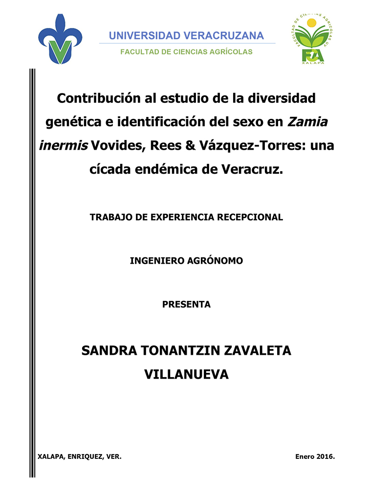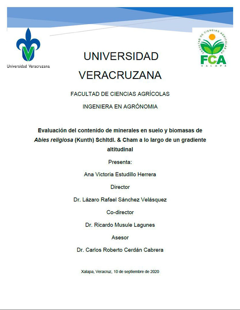 Institución: Facultad de Ciencias Agrícolas, campus Xalapa, Universidad Veracruzana