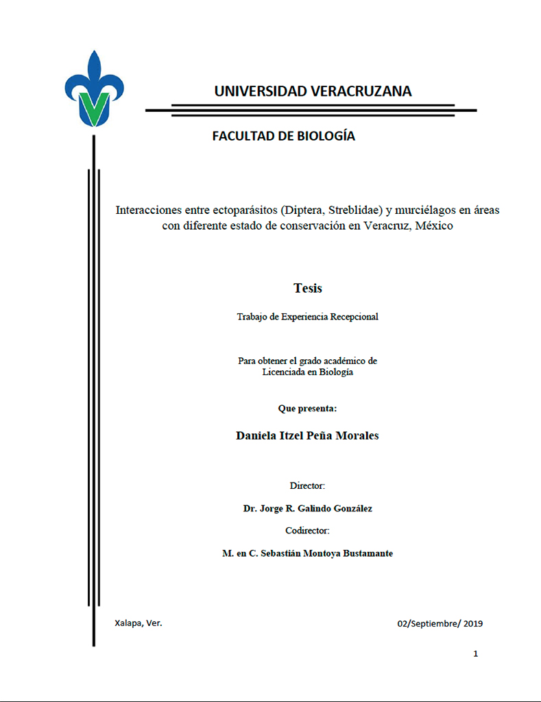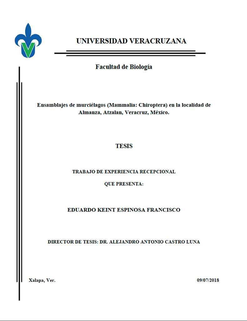 Tesis: Ensamblajes de murciélagos en plantaciones de cítricos y vegetación riparia en la región central de Veracruz, México