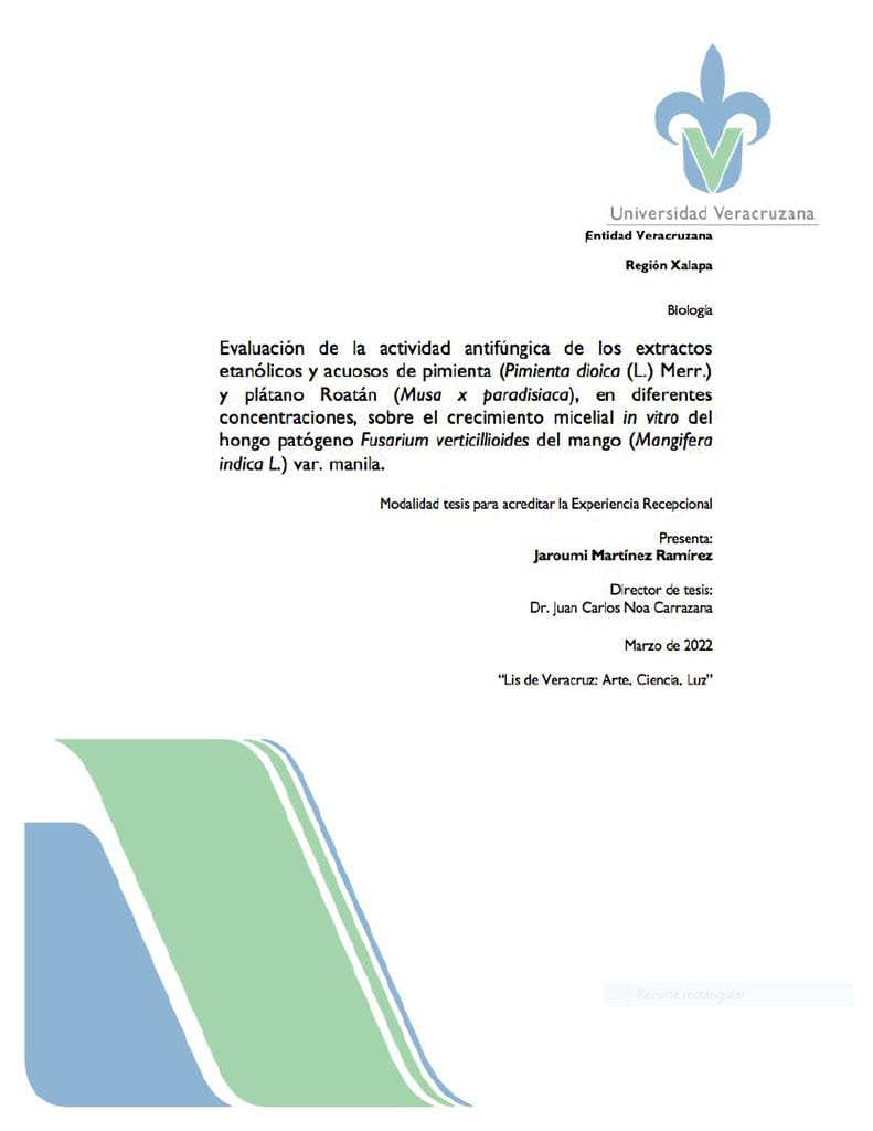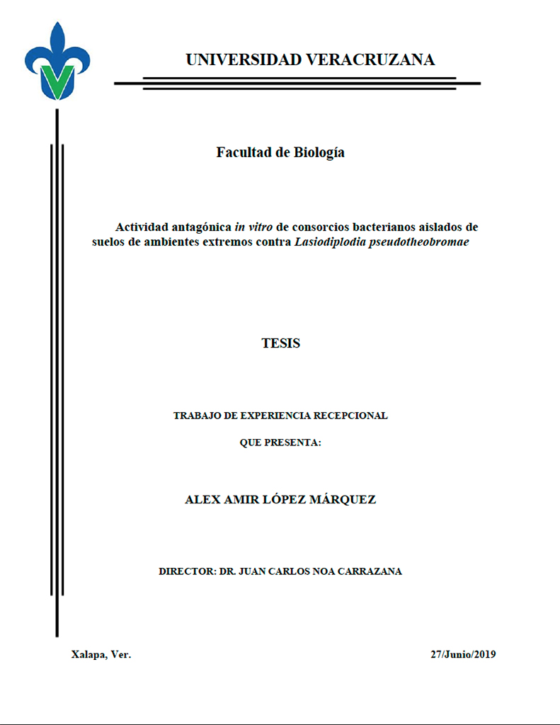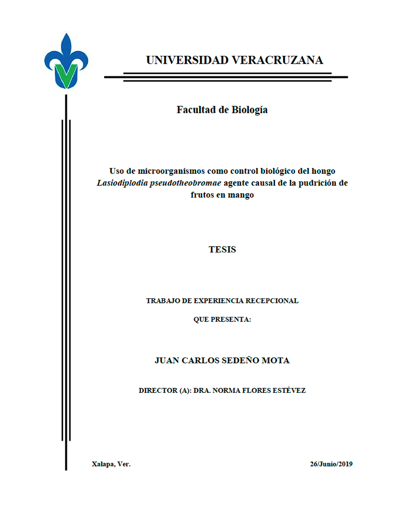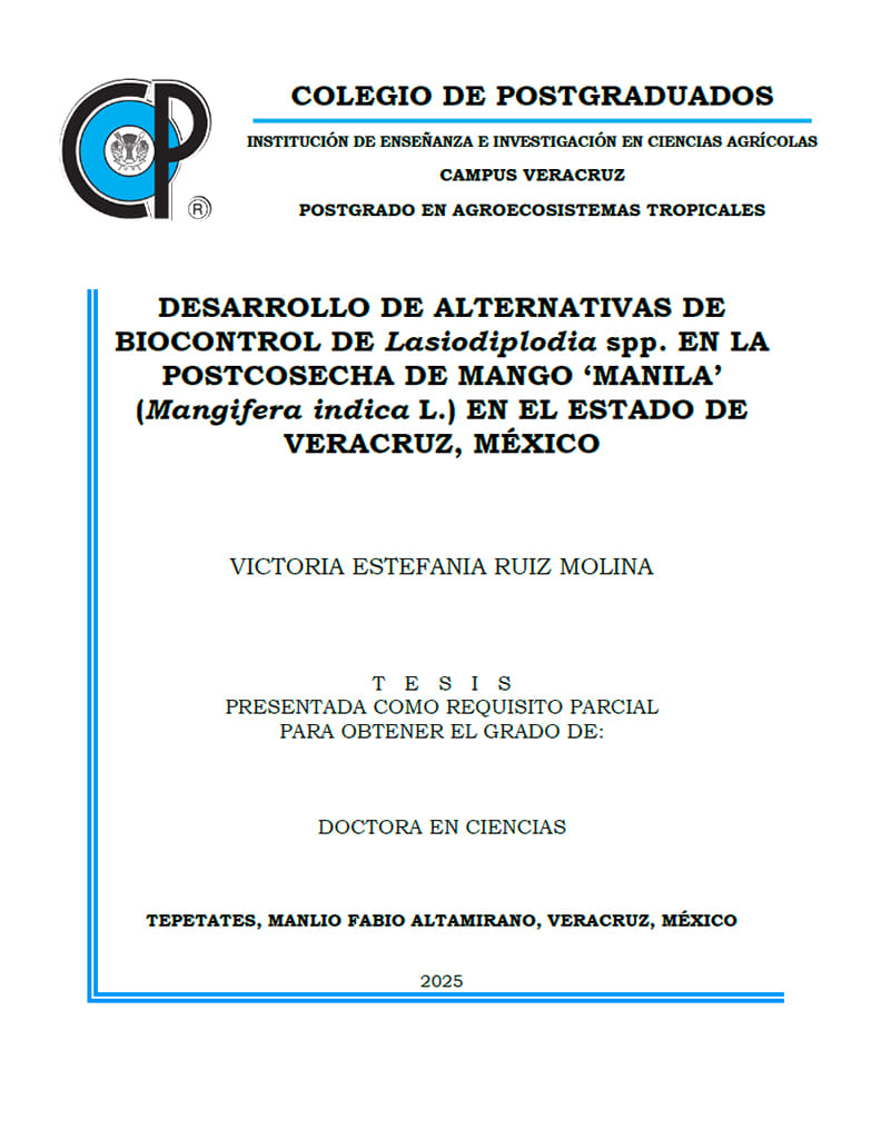 Tesis: Desarrollo de alternativas de biocontrol de Lasiodiplodia spp. en la postcosecha de mango var.Manila (Mangifera indica L.) en el estado de Veracruz, México