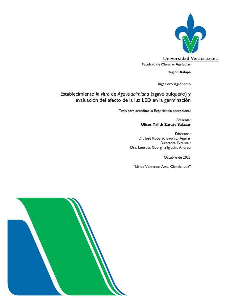 Tesis: Establecimiento in vitro de Agave salmiana (agave pulquero) y evaluación del efecto de la luz LED en la germinación