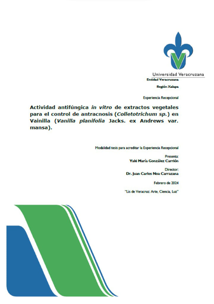 Tesis: Actividad antifúngica in vitro de extractos vegetales para el control de antracnosis (Colletotrichum sp.) en Vainilla (Vanilla planifolia Jacks. ex Andrews var. mansa)
