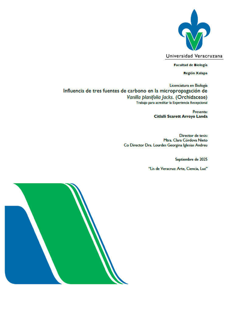 Tesis: Influencia de tres fuentes de carbono en la micropropagación de Vanilla planifolia Jacks. (Orchidaceae)