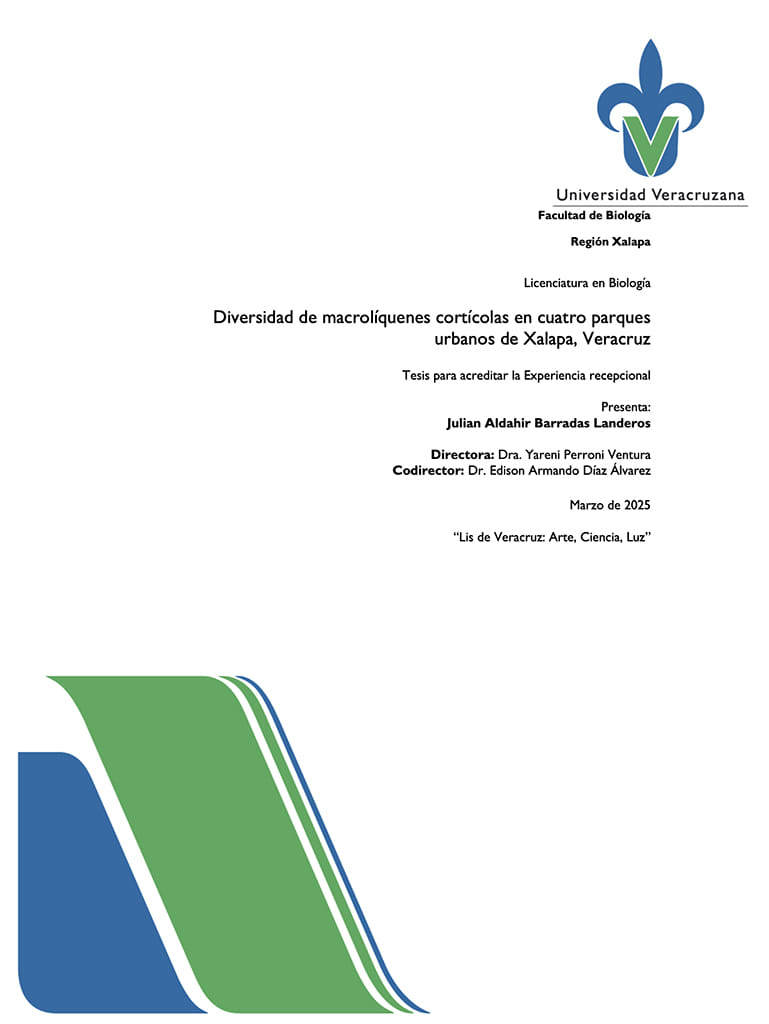 Tesis: Diversidad de macrolíquenes cortícolas en cuatro parques urbanos de Xalapa, Veracruz
